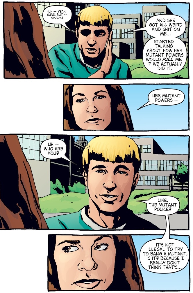 I did a quick check to see if this was an established X-Men story that I may have missed and didn't find it. No Katrina Fox in Lago. But it's not something that was entirely concocted from fresh cloth — because we have been to Lago before.