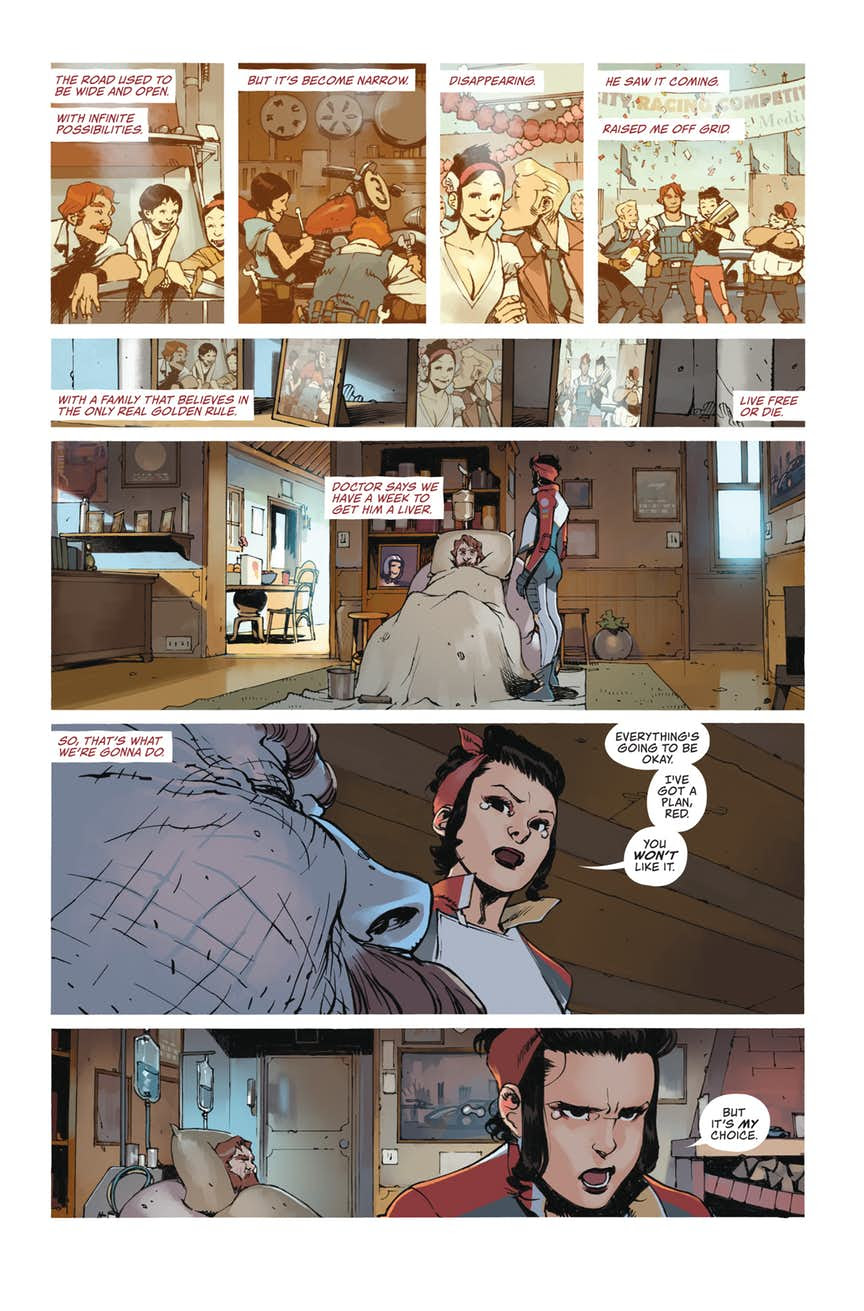 DEATH OR GLORY promises readers a high-speed chase across the American West that examines society's dwindling freedoms and the price paid by those who fight for an untethered life, in this special double-sized first issue with 40 pages of story.