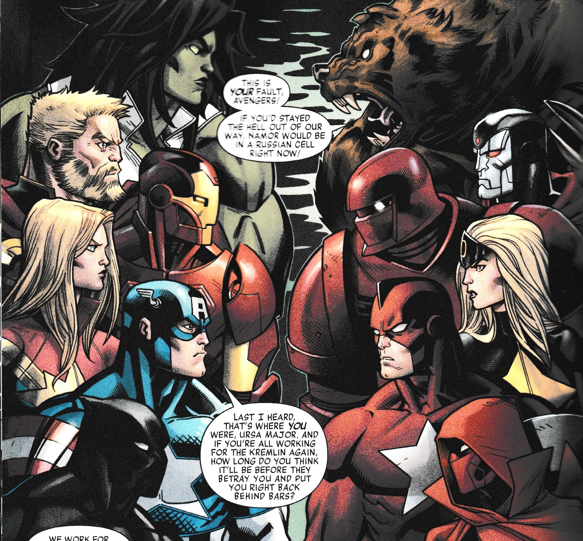 …which means the Avengers will briefly ally with the new Winter Guard, complete with their own Iron Man, Thor, Vision, Captain America, Wasp and Hulk and more…