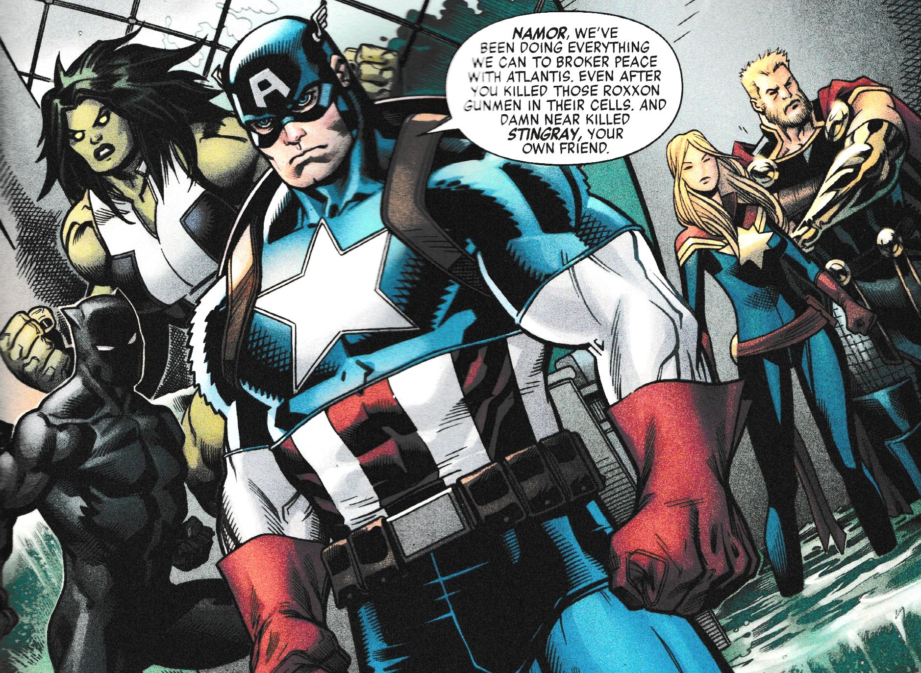 Which sees the Avengers going up against the Namor (note Stingray is no longer dead)…