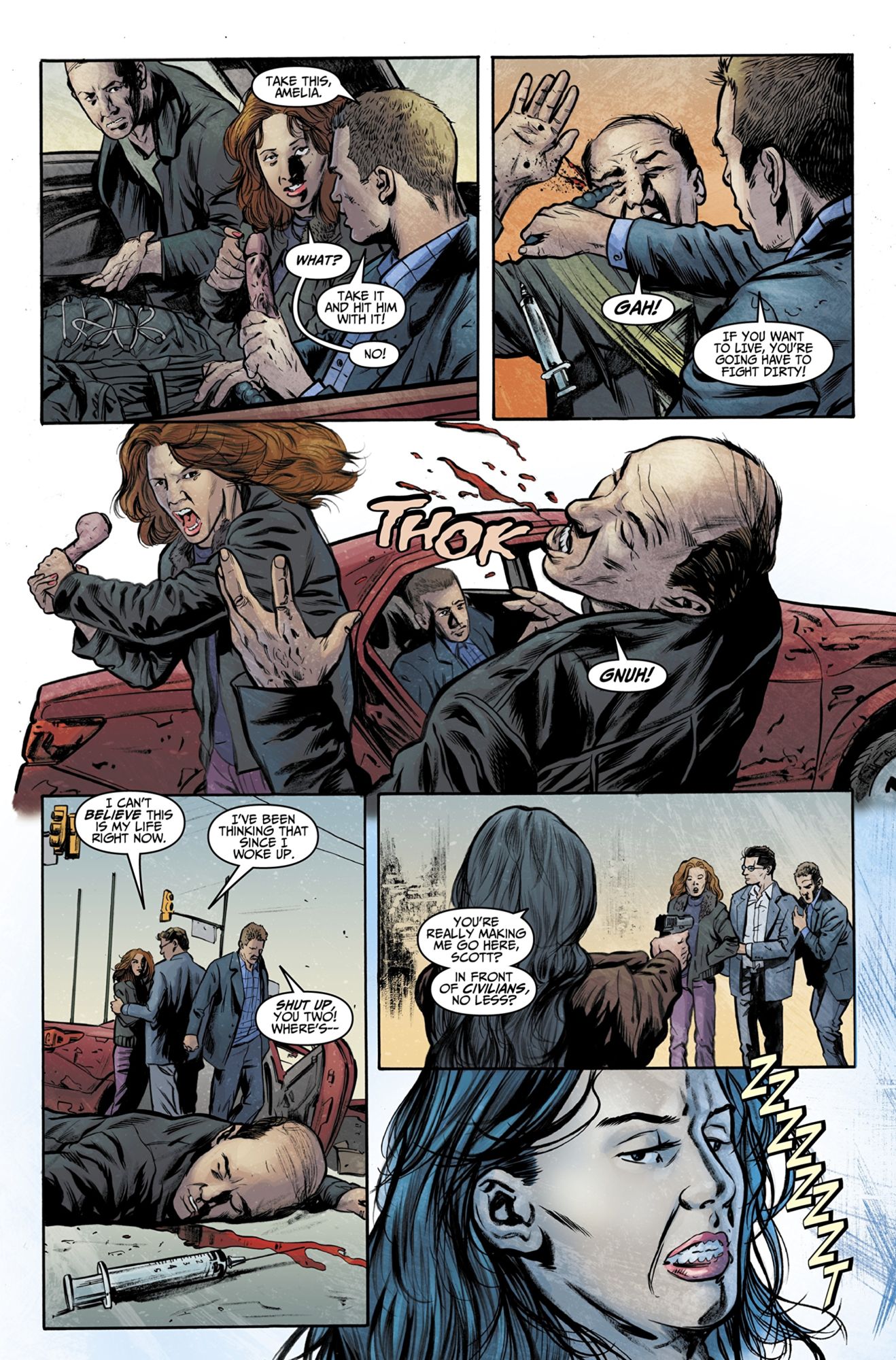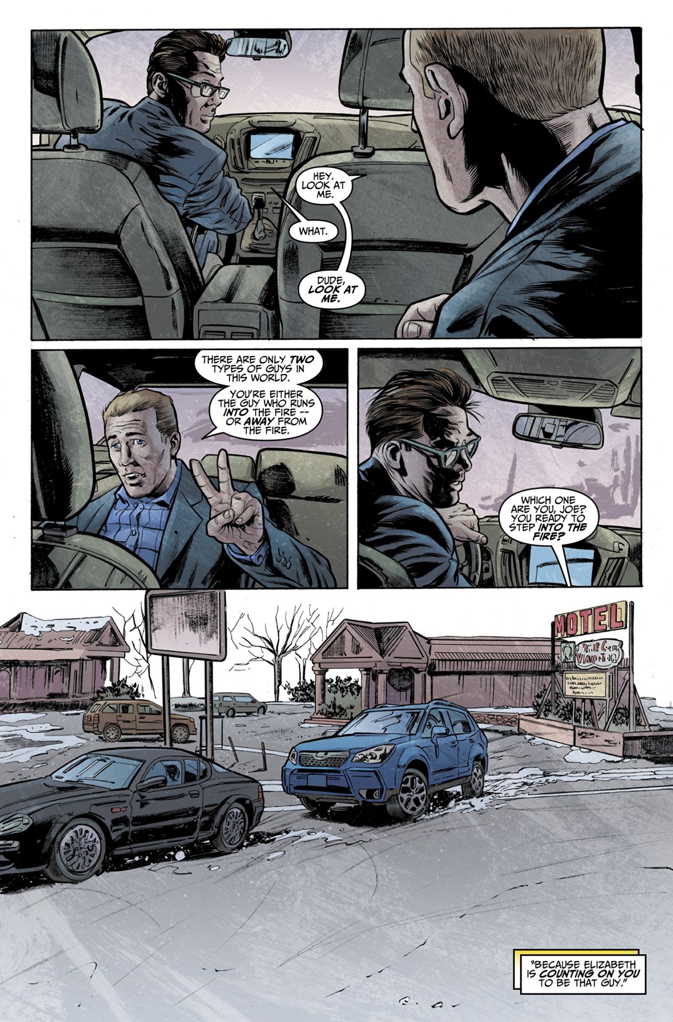 Italian artists Simone Guglielmini and Rafaele Semeraro draw the book with a crisp, clear style. However, the figures can be a bit stiff – their facial expressions too posed as if copied from photographs. I wish the characters had a bit more personality, but it gets the job done. The layouts make for good sequential storytelling without wasting space or panels.