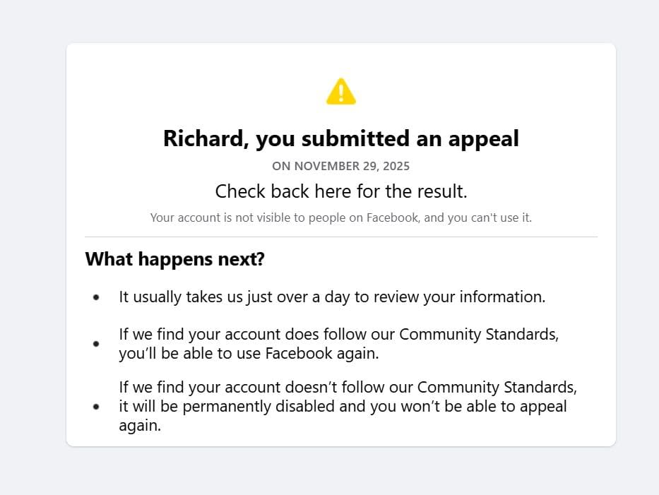 - Locked out of Facebook due to a sudden surge in account suspensions citing cybersecurity reasons