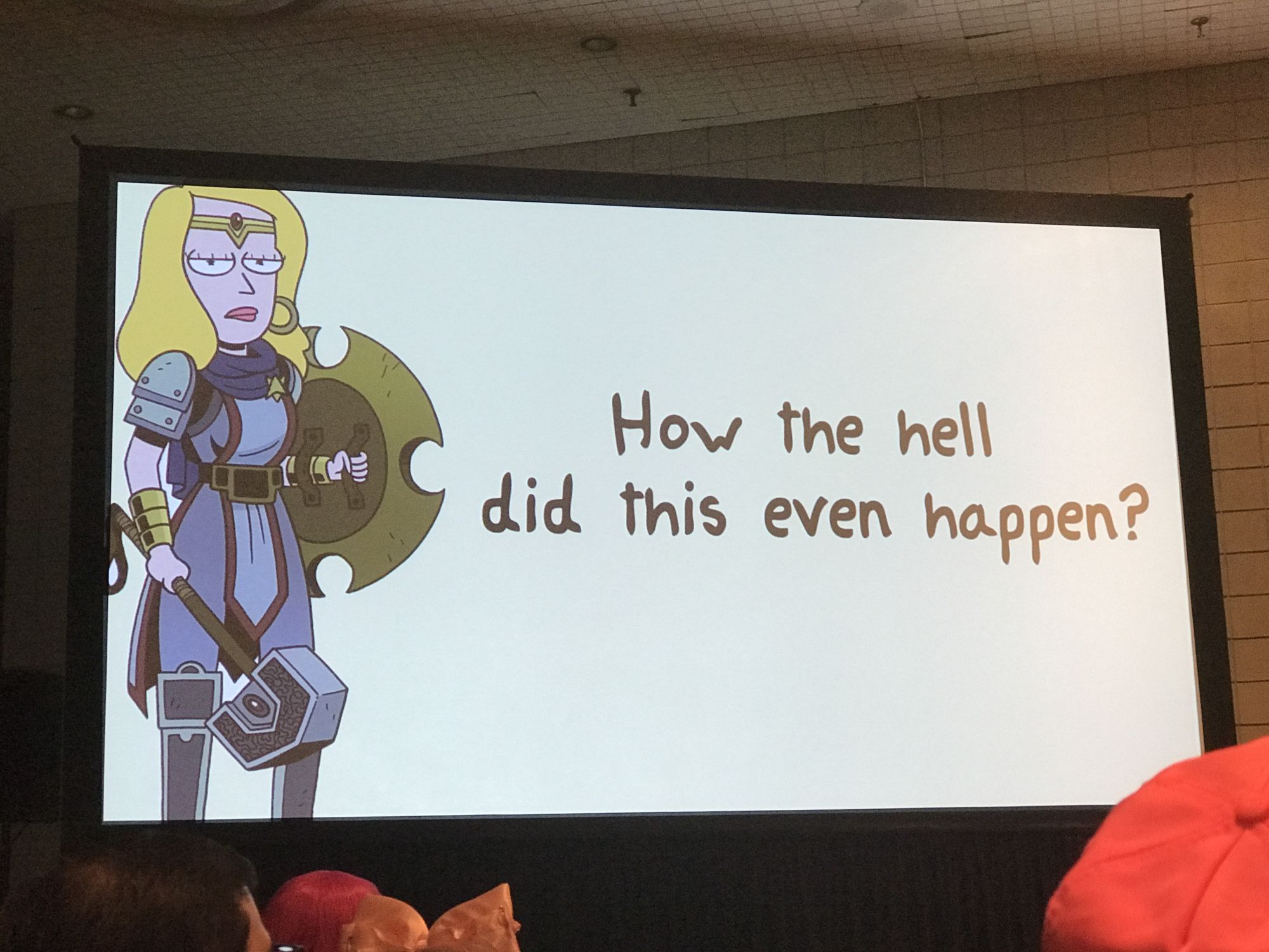 Both writers agreed that D&D was the perfect project to write with a partner as the game is all about collaborative storytelling and hanging out with friends. Rothfuss noted that Rick and Morty is about broken people who manager to love each other. Zub noted that the best episodes of the show are the ones that hit you emotionally.