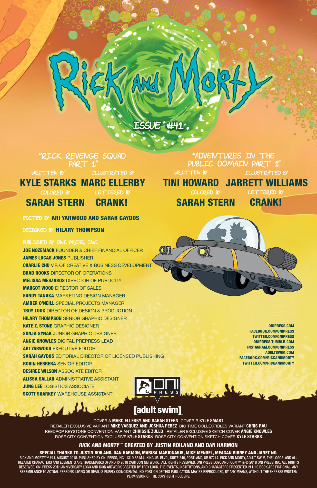 What do a planet-hopping degenerate, a totally buff (and existentially tortured) Meeseeks, a grieving gun-toting widow, an alien prince, and a bull terrier all have in common? They all hate Rick. A lot. And they're coming after him, Morty, and the whole family in RICK REVENGE SQUAD: PART ONE. Also, catch new backup comics by Tini Howard (Rick and Morty™: Pocket Like You Stole It, Assassinistas) and Jarrett Williams (Super Pro K.O., Hyper Force Neo)!