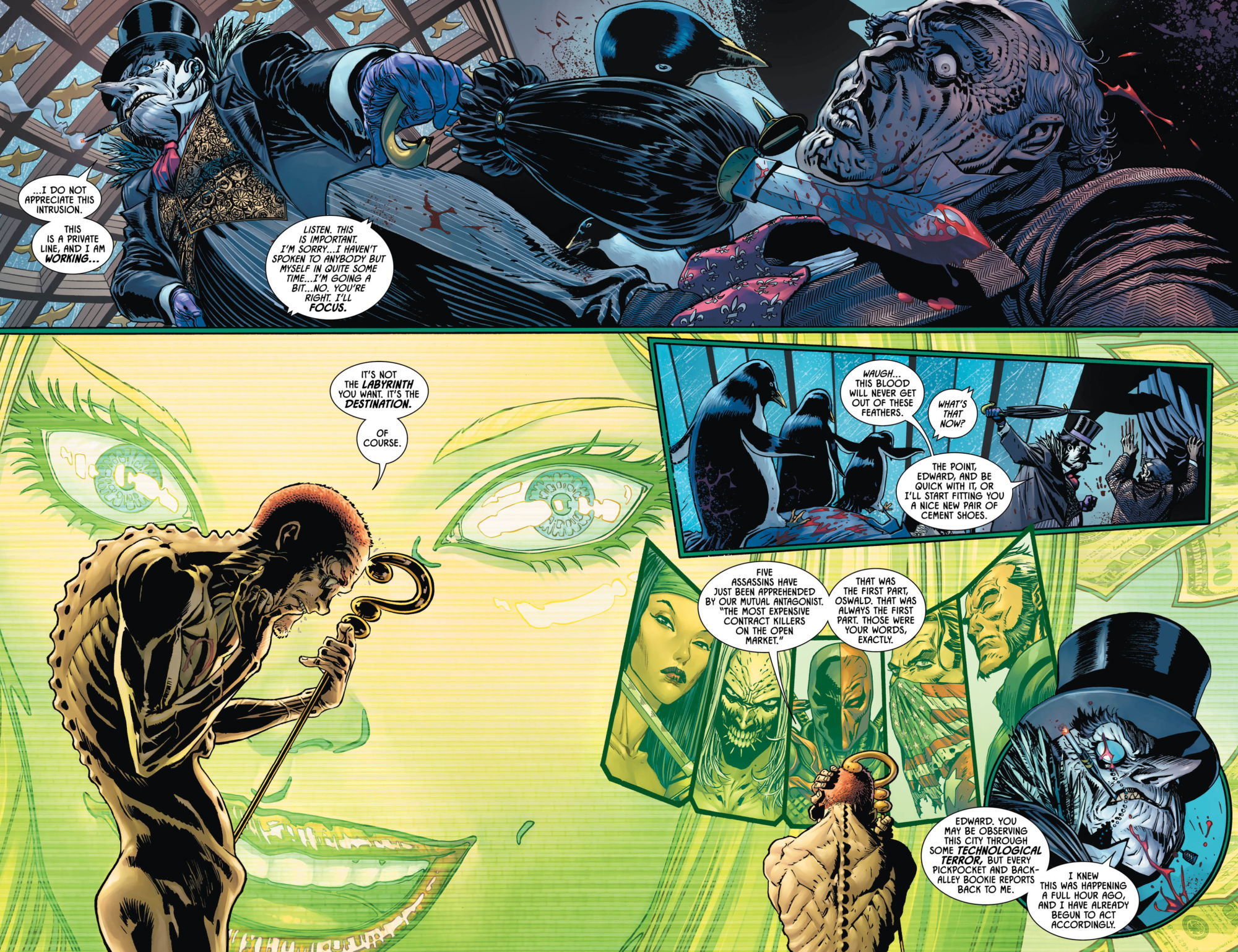 The Riddler has been lying low since his humiliating defeat as part of Bane's army- but as costumed assassins start to make their way into Gotham City, Edward Nygma may have the answers he's been looking for. Or at least, the answer to why Deathstroke is trying to kill him! Is it possible that Batman's tussle with Slade Wilson was all just a ruse to get the killer closer to his true target?