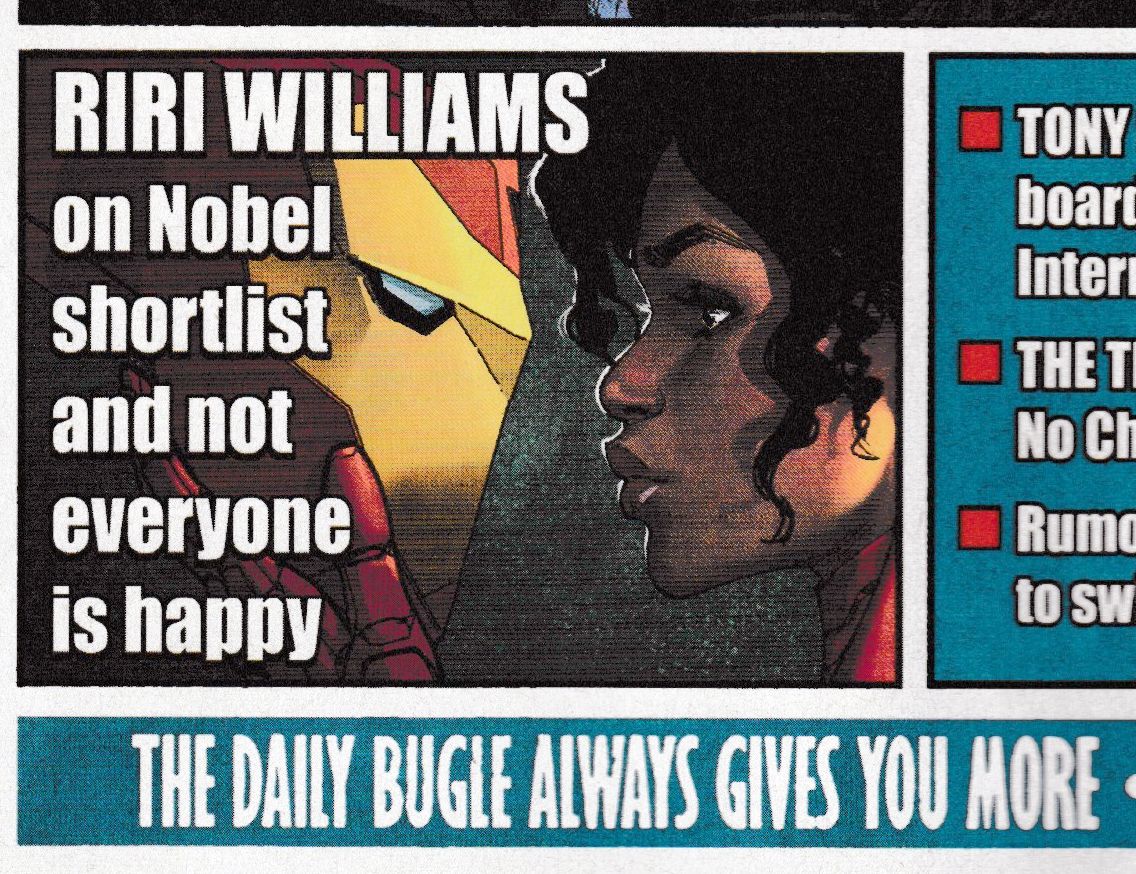 Riri Williams on the shortlist of the Nobel Prize in the Marvel Universe – and that some people in said Marvel universe aren't happy about it.