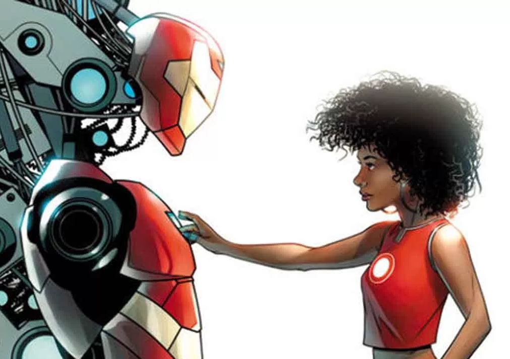 Riri Williams is a fifteen-year-old girl who created her own Iron Man-style suit and was mentored by Tony Stark – and an artificial intelligence version of Tony Stark into creating new armours and establishing the identity of Ironheart. And, in the absence of Tony Stark after Civil War II, taking the lead of the Invincible Iron Man comic.