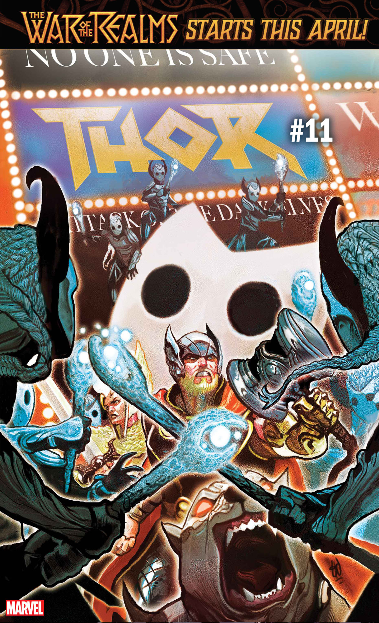 Marvel's full March solicitations will drop later today, but ahead of that, Marvel is teasing the lead-in to War of the Realms, billed as the biggest super-mega-crossover event Marvel has ever done, "unparalleled" as they put it, compared to Secret Wars, but apparently bigger. So massive, in fact, that it requires three separate series to crossover with it before it even starts!