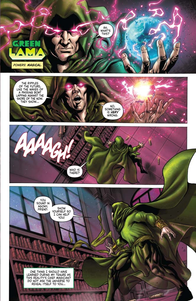 I like that Green Lama of the future can see "our" Green Lama here. It's kind of dreamlike and creepy, hopefully.
