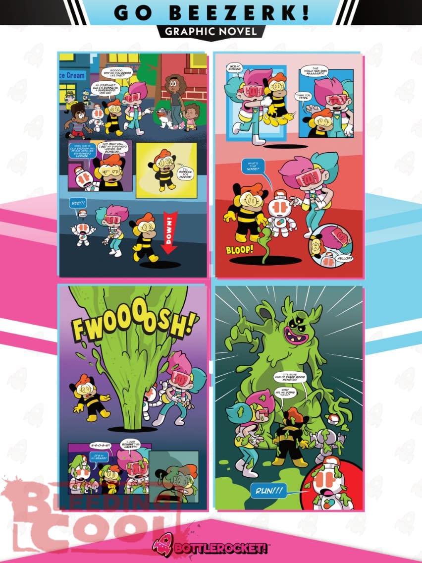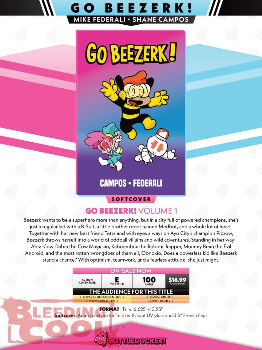 Shane Campos and Mike Federali bring you the whimsical world of would-be superhero Beezerk as she explores the silly suburbs of Ayo City. She's joined by her little brother Medbot, new best friend Tetra, and always looking up to Ayo City's high flying champion, Pizzow! Lurking in the shadows of Ayo City are oddball villains and memorable monsters of all shapes and sizes, like Abra-Cow-Dabra the Cow Magician, Kaboombox the Robotic Rapper, Mommy Brain the Evil Android, and the most rotten wrongdoer of them all, Obnoxio. Does a powerless kid like Beezerk stand a chance against such impossible odds?!