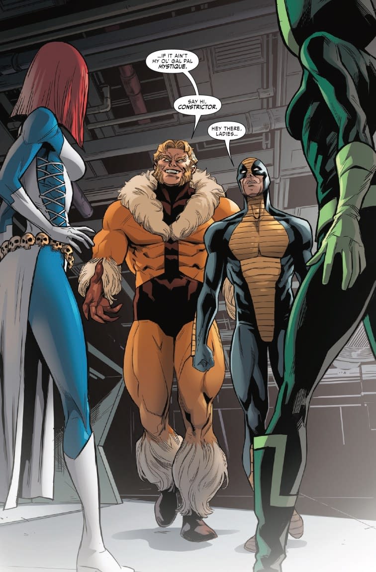 - Haunted by visions of Sabretooth and Constrictor, Rogue confronts mutant haters and past Brotherhood ties.