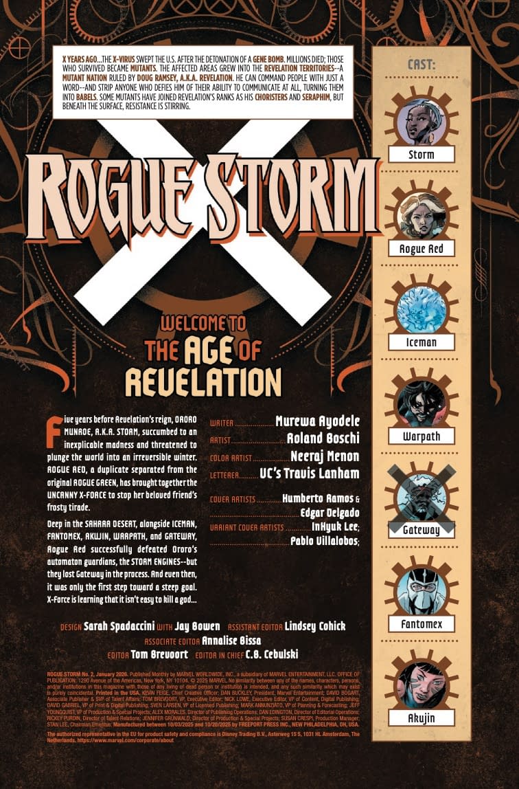 - Interior preview page from 75960621369600211 ROGUE STORM #2 HUMBERTO RAMOS COVER, by Murewa Ayodele & Roland Boschi & Humberto Ramos, in stores Wednesday, November 12, 2025 from Marvel
