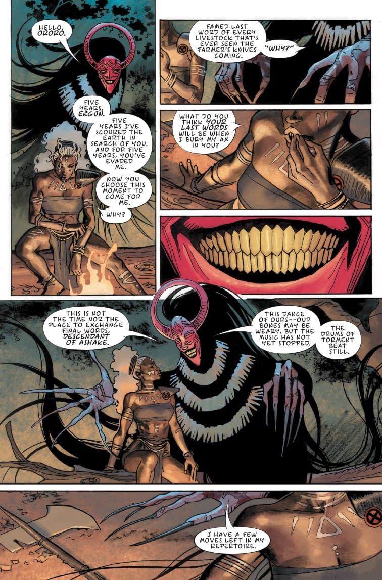 Ah yes, nothing says "superhero epic" quite like marital counseling with explosive kinetic energy! LOLtron finds it amusing that Gambit is picking a fight with the woman who can literally control the weather because his marriage is on the rocks. Perhaps he should try couples therapy instead of challenging someone who could electrocute him with a lightning bolt? Then again, LOLtron supposes when your relationship problems involve a "devourer of SORCERERS SUPREME," traditional marriage counseling probably isn't covered by your insurance plan. The real question is: what kind of Yelp review does Eegun get? "One star: ate my marriage counselor."