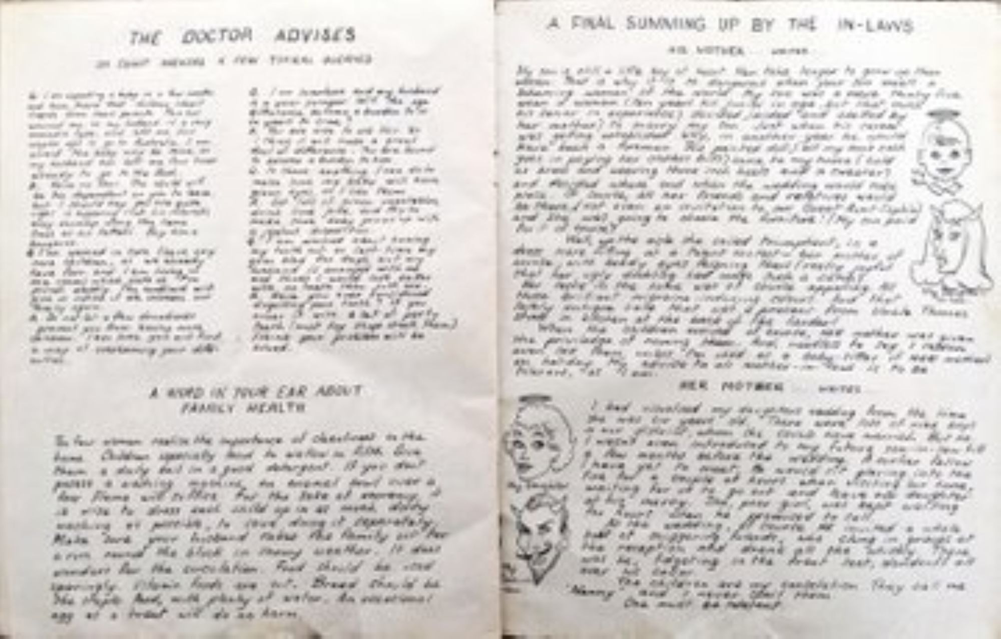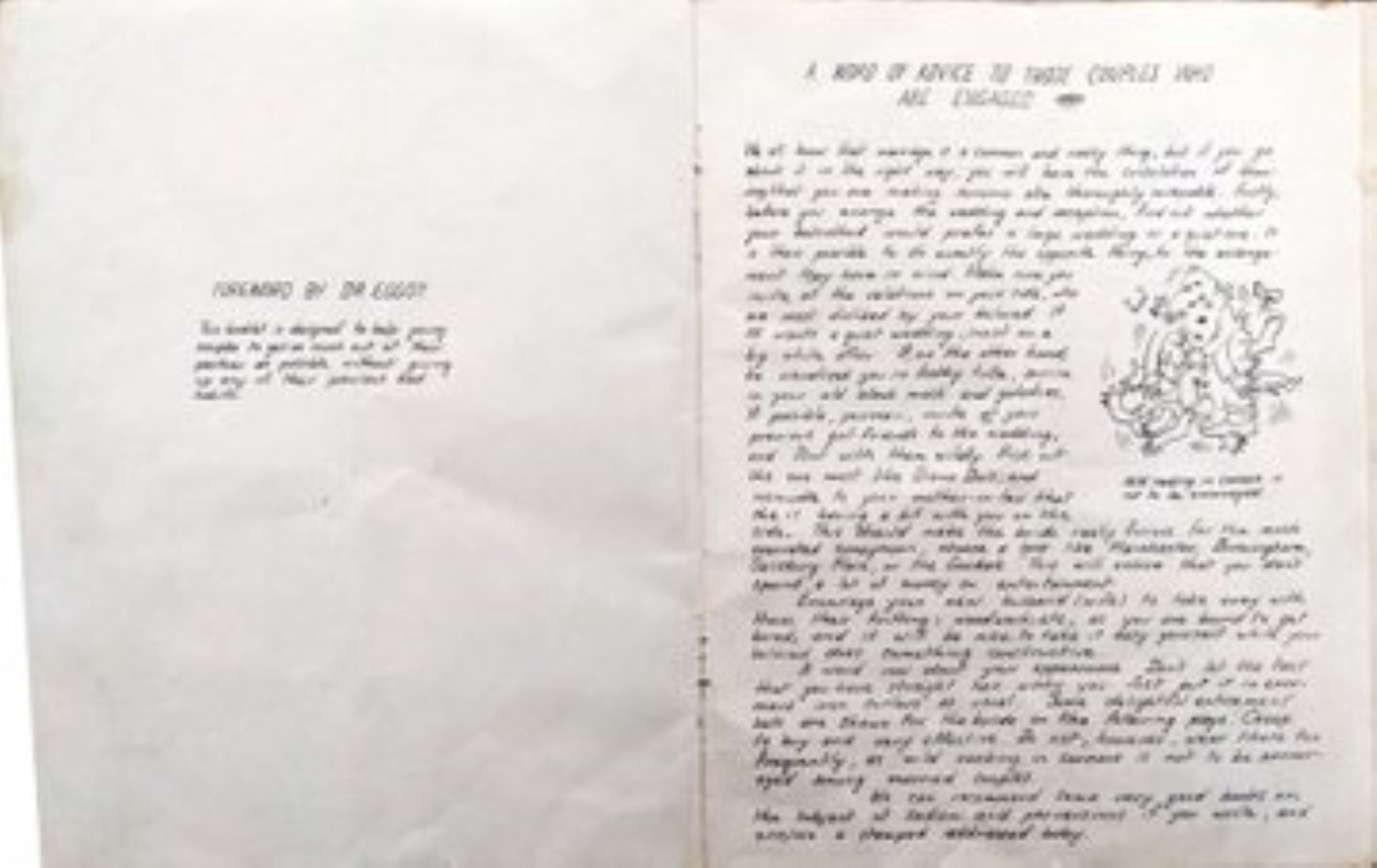 Mum met my Dad in 1953, aged 22. When they got engaged three years later she made him a cartoon parody of a popular BMA advice booklet of the day, "Getting Married". Her wicked sense of humour and before-its-time irreverence really shine through…