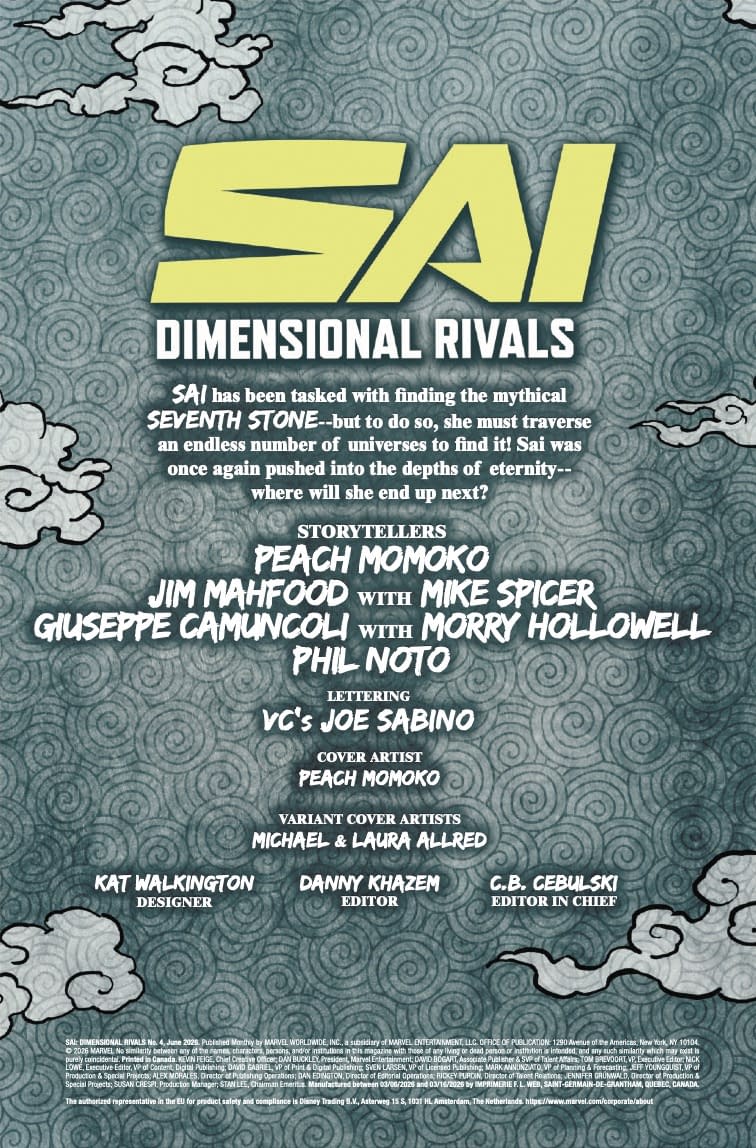 - Cover image for 75960621391700411 SAI: DIMENSIONAL RIVALS #4 PEACH MOMOKO COVER, by Peach Momoko & Giuseppe Camuncoli & Jim Mahfood & Peach Momoko, in stores Wednesday, April 8, 2026 from Marvel