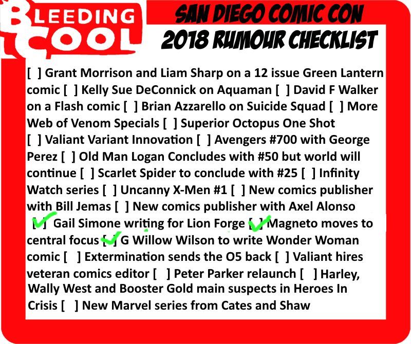 The Bleeding Cool San Diego Comic-Con 2018 Rumour Checklist