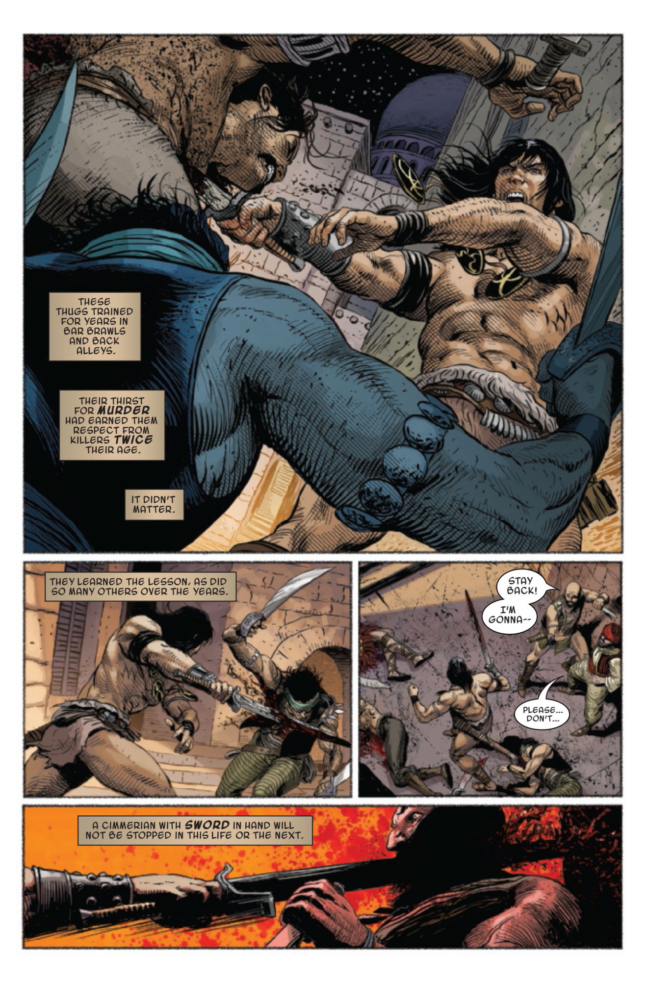 Conan's plans to have a half dozen monthly series at Marvel continue in Savage Sword of Conan #7, in which, in this preview, we find Conan faced with an important choice: to upset the status quo, or to support a system of rampant wealth inequality in ancient Shadizar. It begins when Conan finds a man about to have his throat by violent criminals.
