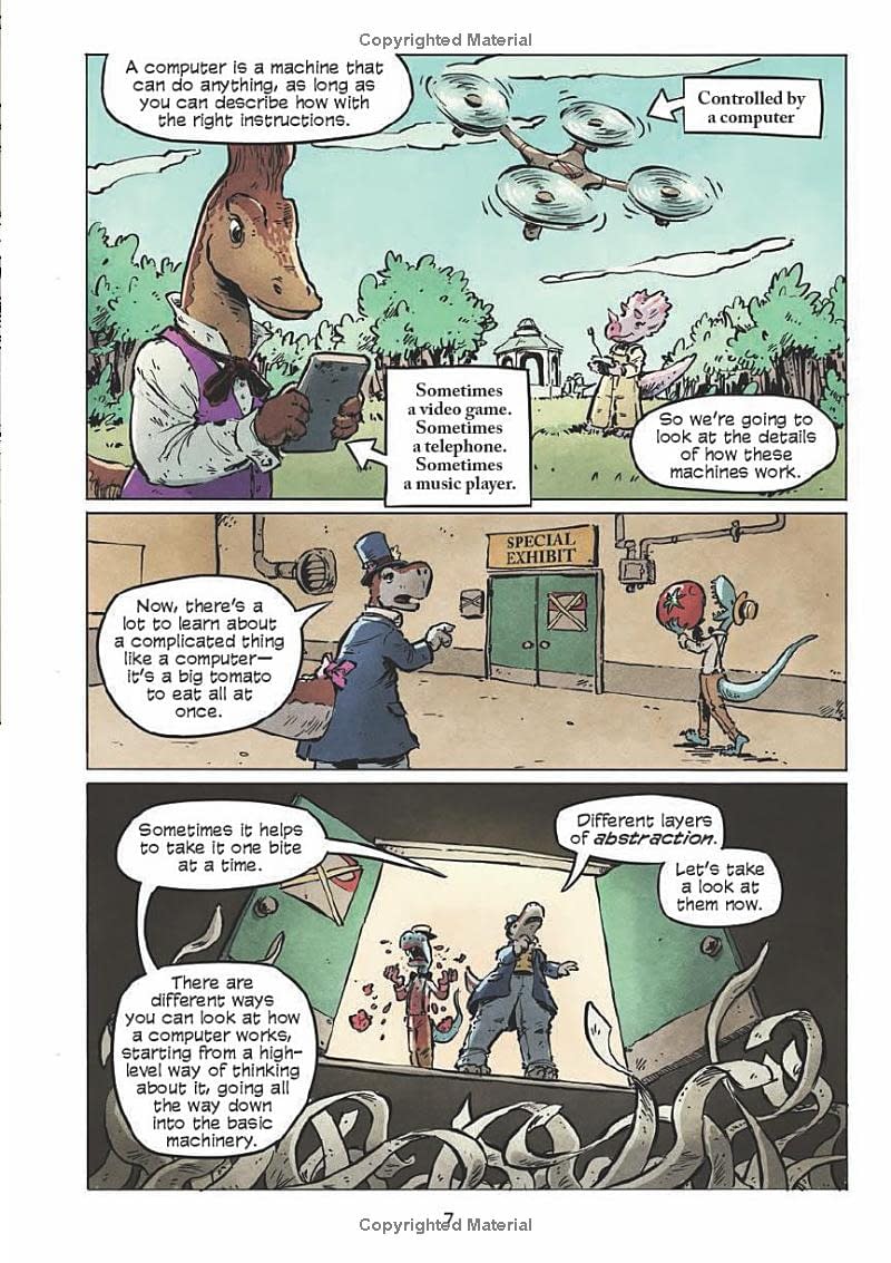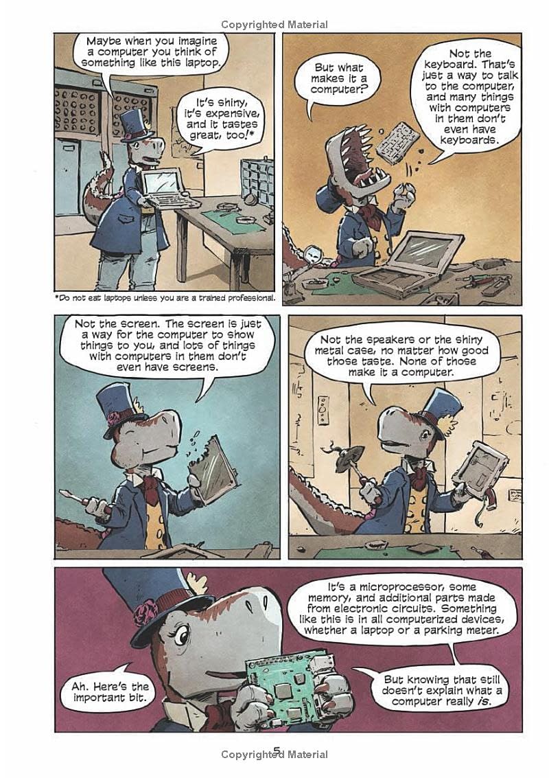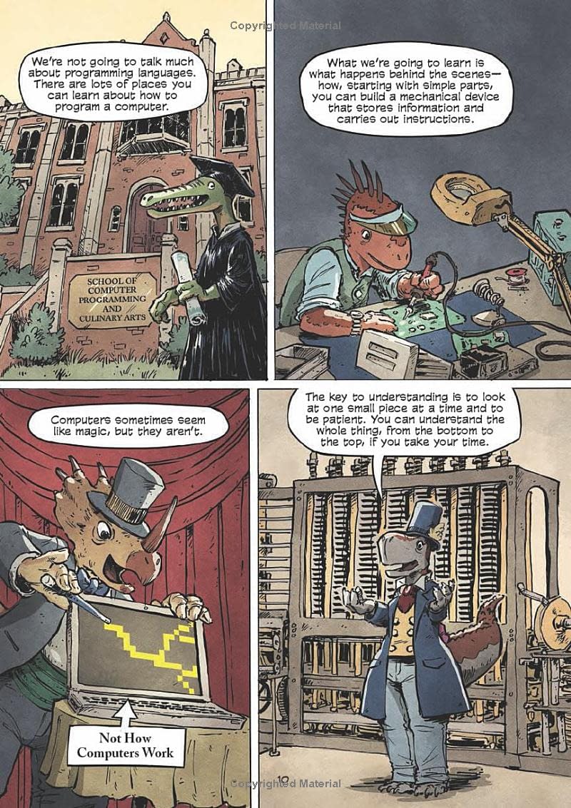 "The whole world now runs on computers. They're everywhere, from your pocket phone to your microwave oven. But, what exactly is a computer? How could you possibly build machines that calculate things, play video games, and dim the lights on command? Professor Isabella Brunel, Victorian Era Computer Expert (and a Tyrannosaurus Rex), narrates a screwball comedy romp through the fundamentals of computer architecture. The madcap cast teaches you how these extraordinary devices really work, but the book's real message is this: technology is not magic, it's created by human beings, and what other people have figured out, you can understand too."