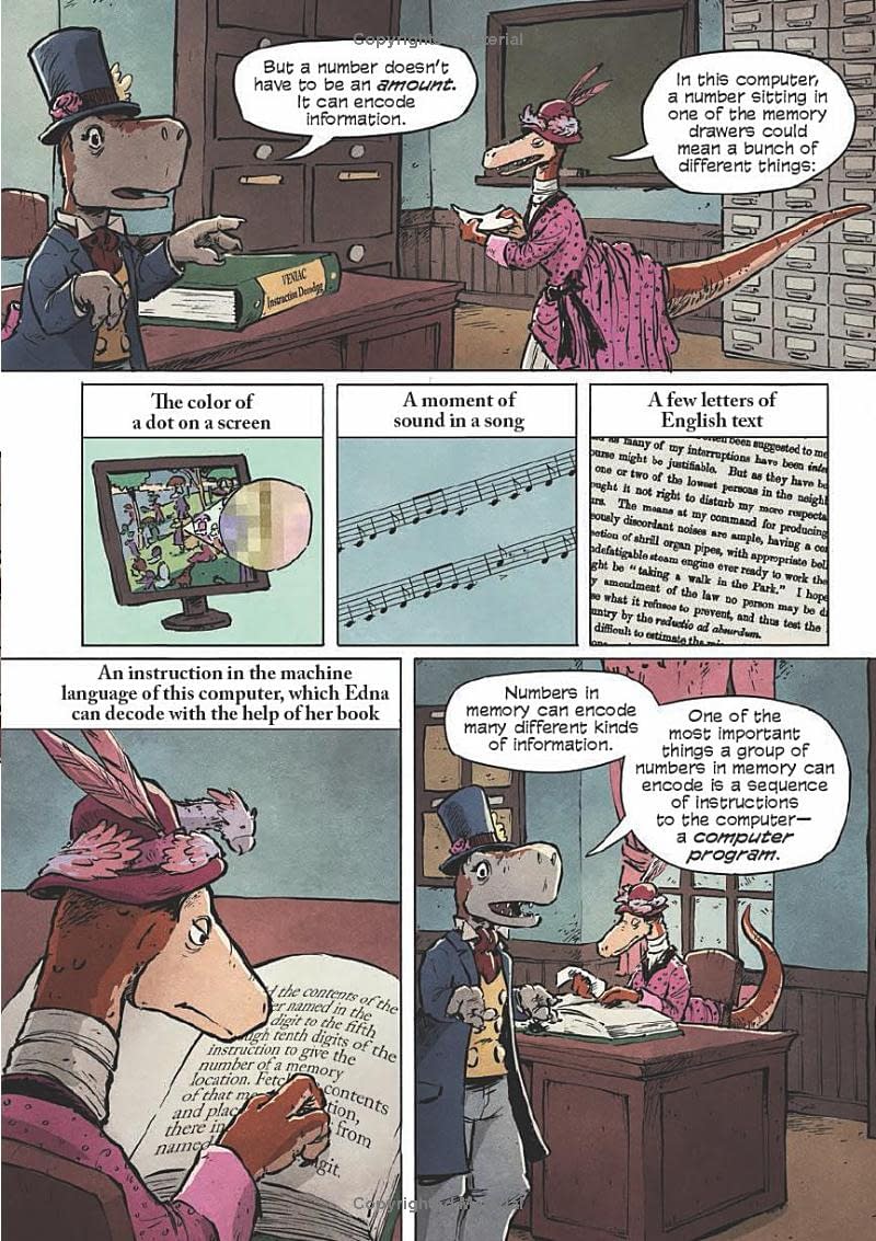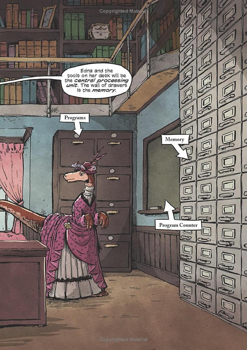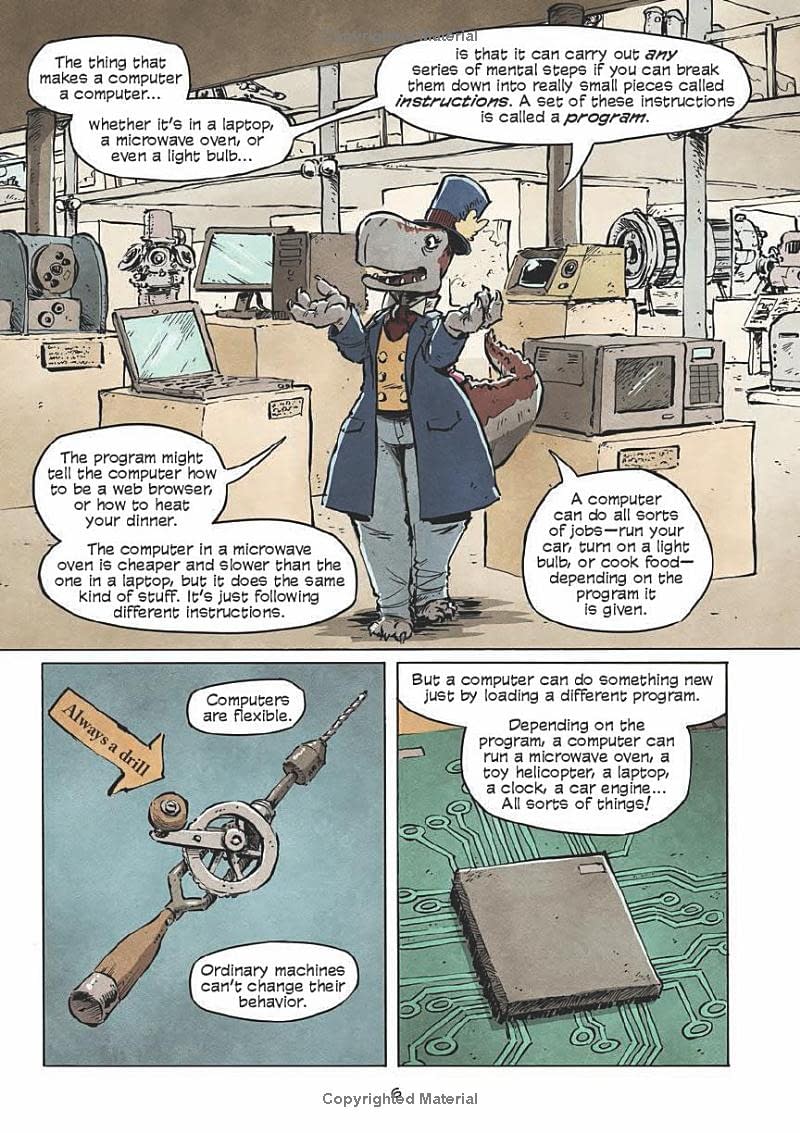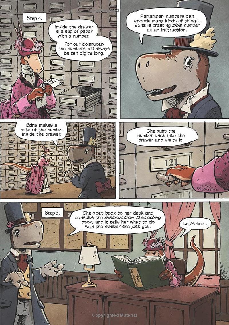 "The whole world now runs on computers. They're everywhere, from your pocket phone to your microwave oven. But, what exactly is a computer? How could you possibly build machines that calculate things, play video games, and dim the lights on command? Professor Isabella Brunel, Victorian Era Computer Expert (and a Tyrannosaurus Rex), narrates a screwball comedy romp through the fundamentals of computer architecture. The madcap cast teaches you how these extraordinary devices really work, but the book's real message is this: technology is not magic, it's created by human beings, and what other people have figured out, you can understand too."