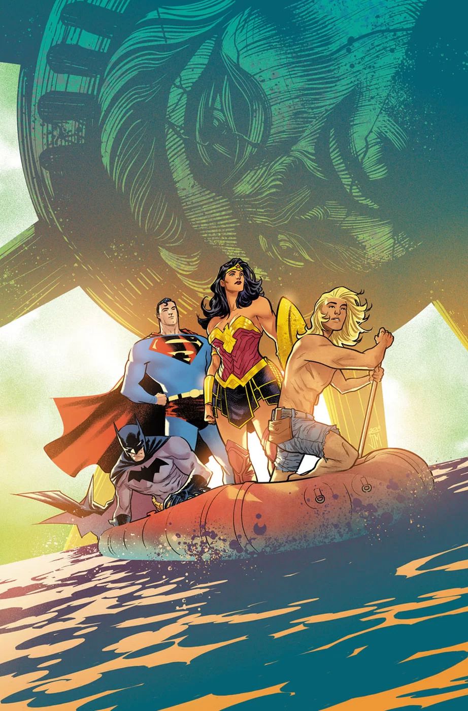 "The Justice Doom War" part three! Things are getting dangerous across the time stream. On one side of time, the Justice League team finds heroic purpose; on the other, it's a future full of chaos and trial. It's the Totality in action. If they can't stop Lex's Legion across all fronts, there may be only one other option: embrace Doom!