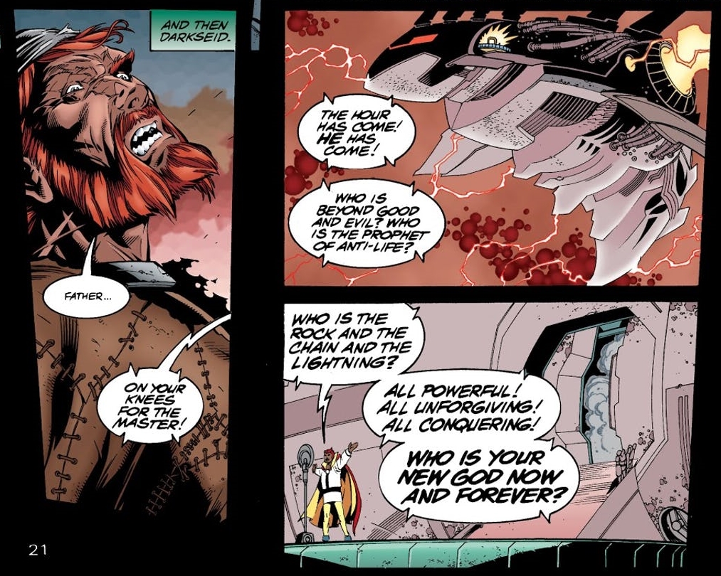 But that was about it. In Mister Miracle, it was weaponised and used for narrative beats, noting moments of inevitability and somewhere equating the New God Darkseid with the old God of 'I Am.'