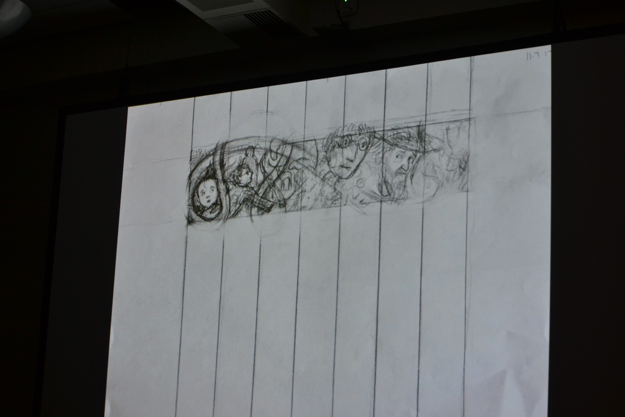 Jim Kay has one of the hardest jobs on the panel, he is fully illustrating the entire Harry Potter series one book at a time, with the first three illustrated volumes already released. Kay talked at length about being apprehensive about taking on the responsibility of illustrating one of the most beloved series of books in history. He also showed pictures of his process, which often started with building 3D dioramas with found objects in his home, and creating characters out of clay. Kay said that being able to manipulate these models helped him to illustrate the many different scenes throughout the books. In one particular photo he drew Buckbeak the hippogriff on Hagrid's giant-sized bed, but then realized that it just looked like a small hippogriff on a regular bed, so he added a chicken. His art was also completely stunning, with an ethereal, dreamy, magical quality to it. Honestly, there were many of his images that I would have paid to have framed and hung on my wall as independent artwork.