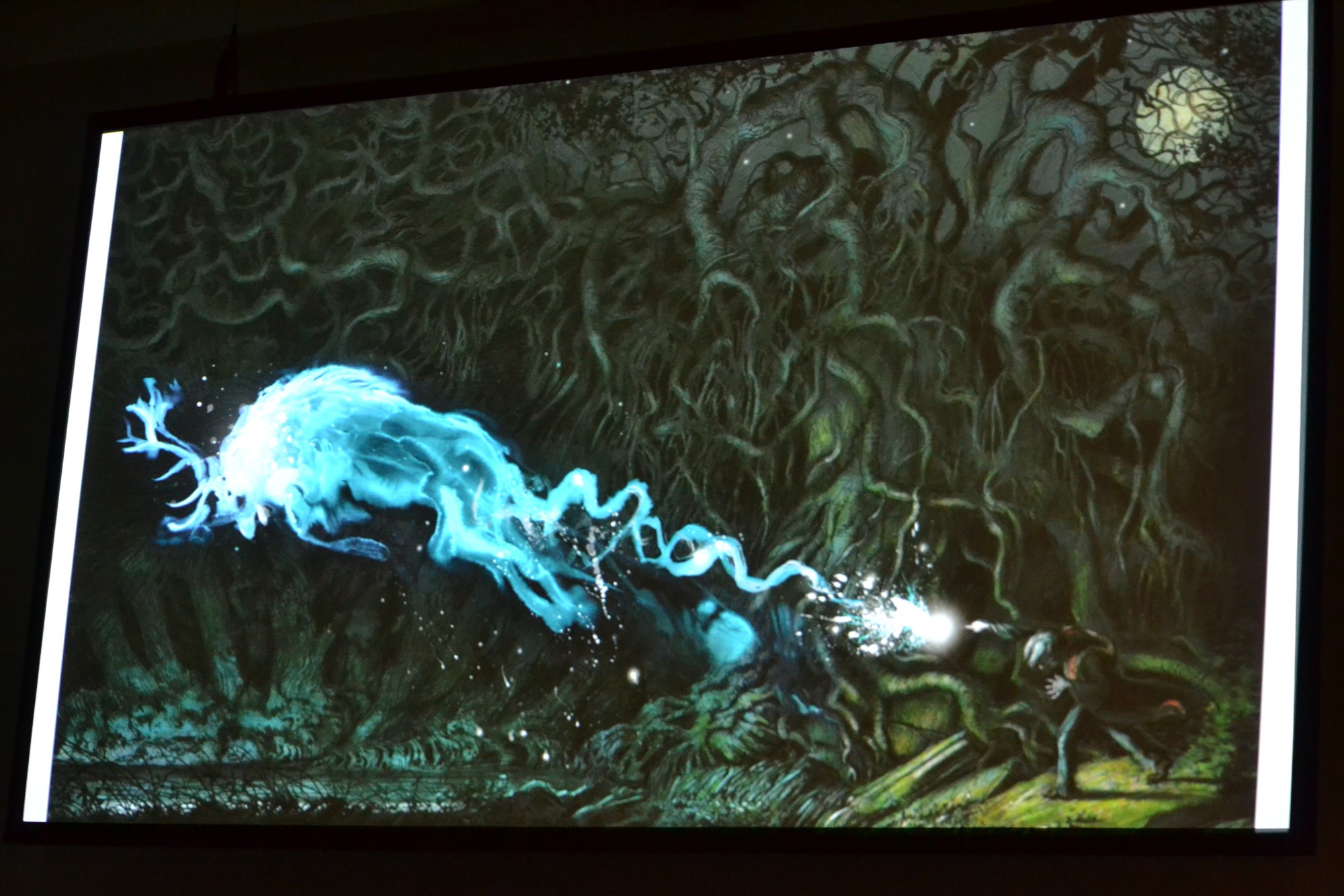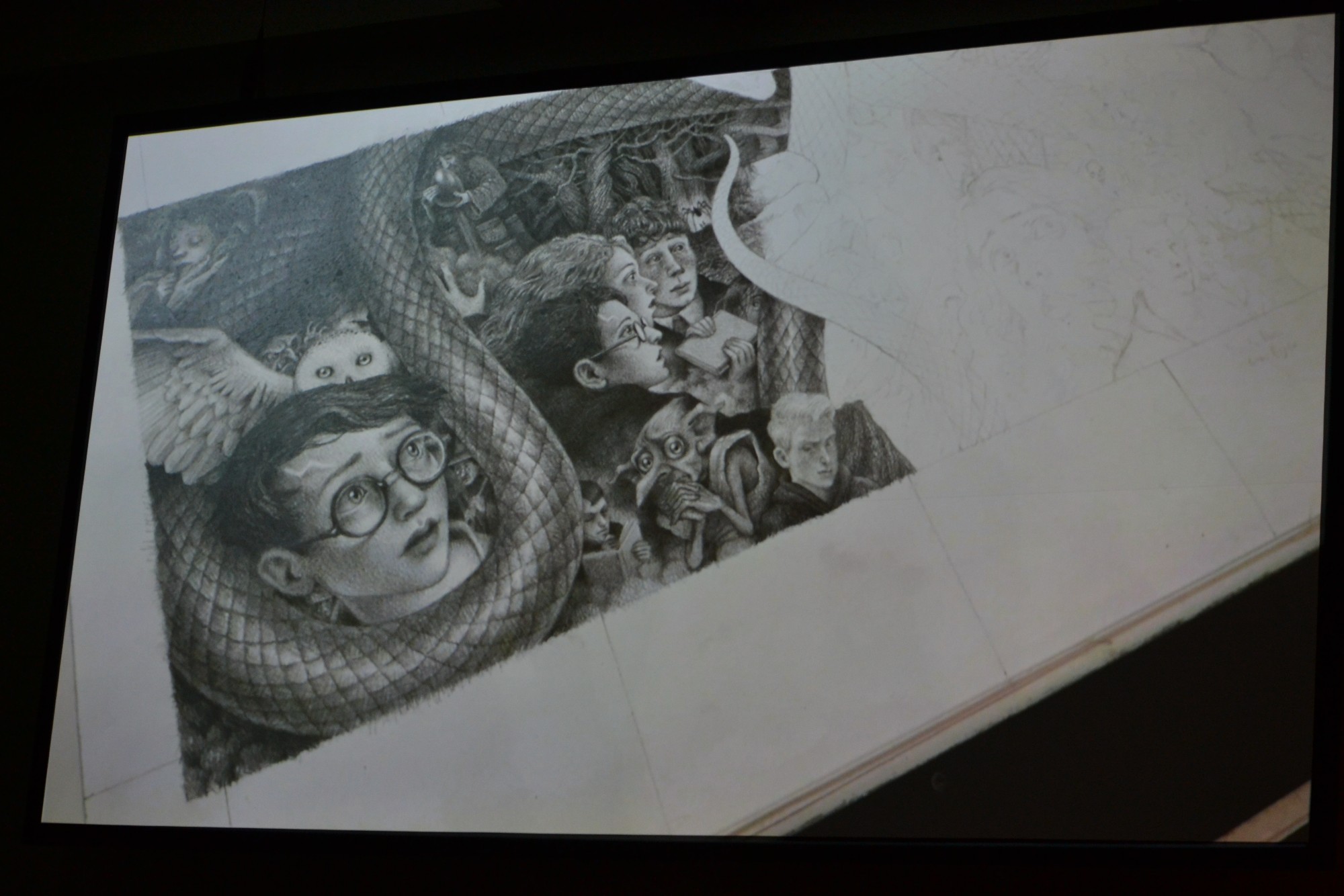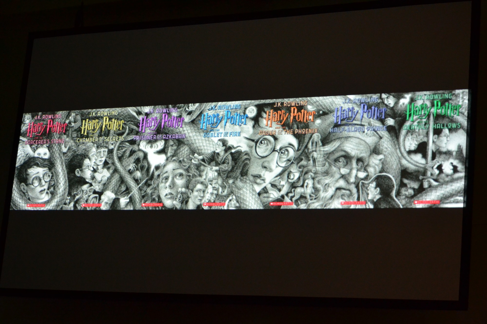 Moderated by Melissa Anelli (The Leaky Cauldron), and opened by a video message from original U.S. Harry Potter illustrator Mary GrandPré, the panel included the three illustrators of the most recent editions of Harry Potter, Kazu Kibuishi (15th Anniversary paperback edition), Jim Kay (illustrated edition), and Brian Selznick (20th Anniversary hardcover addition) as well as editor Arthur A. Levine and art director David Saylor.