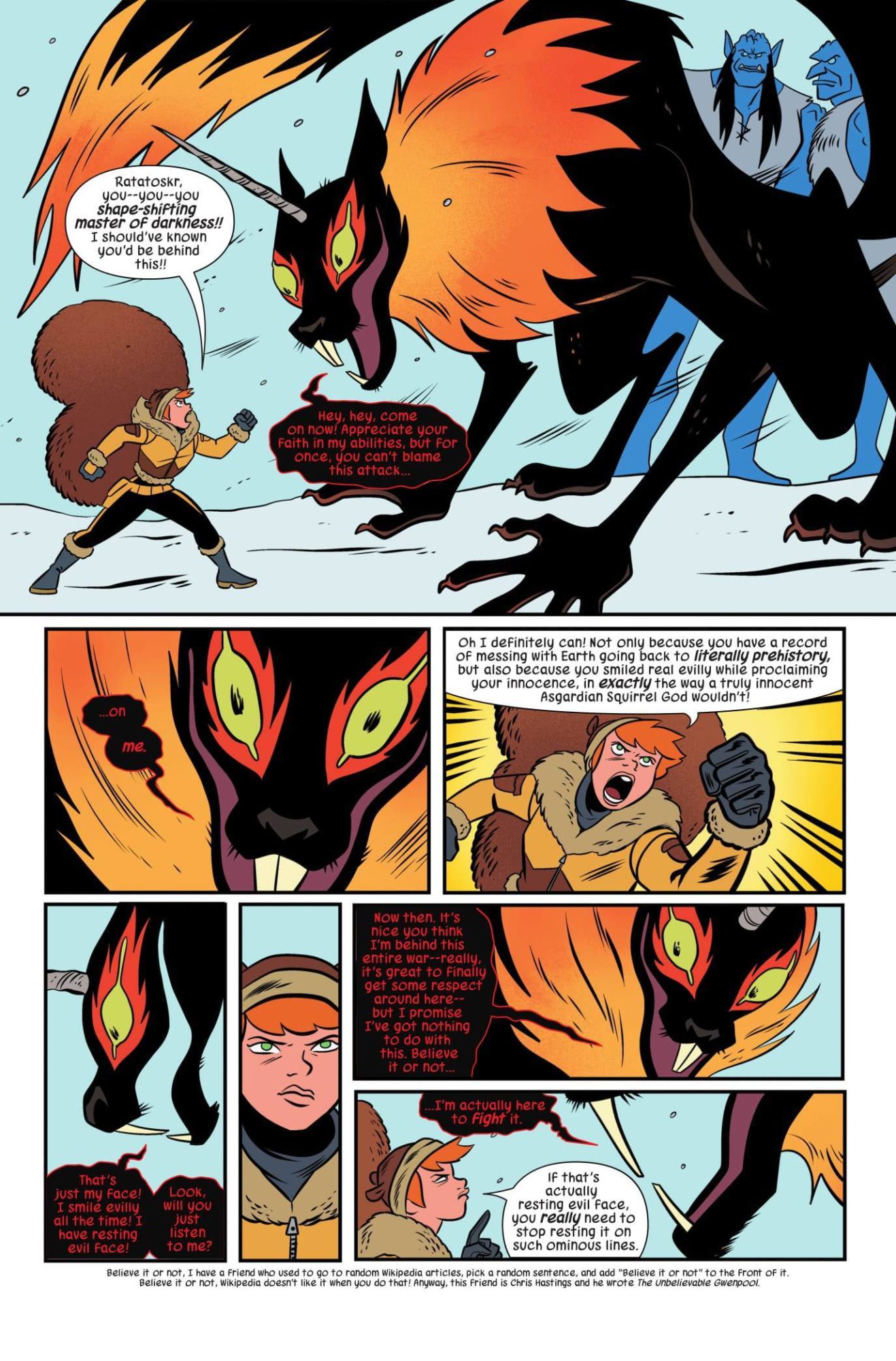 • In this issue, Squirrel Girl and Ratatoskr fight Frost Giants…and their unspoken assumptions about each other!
