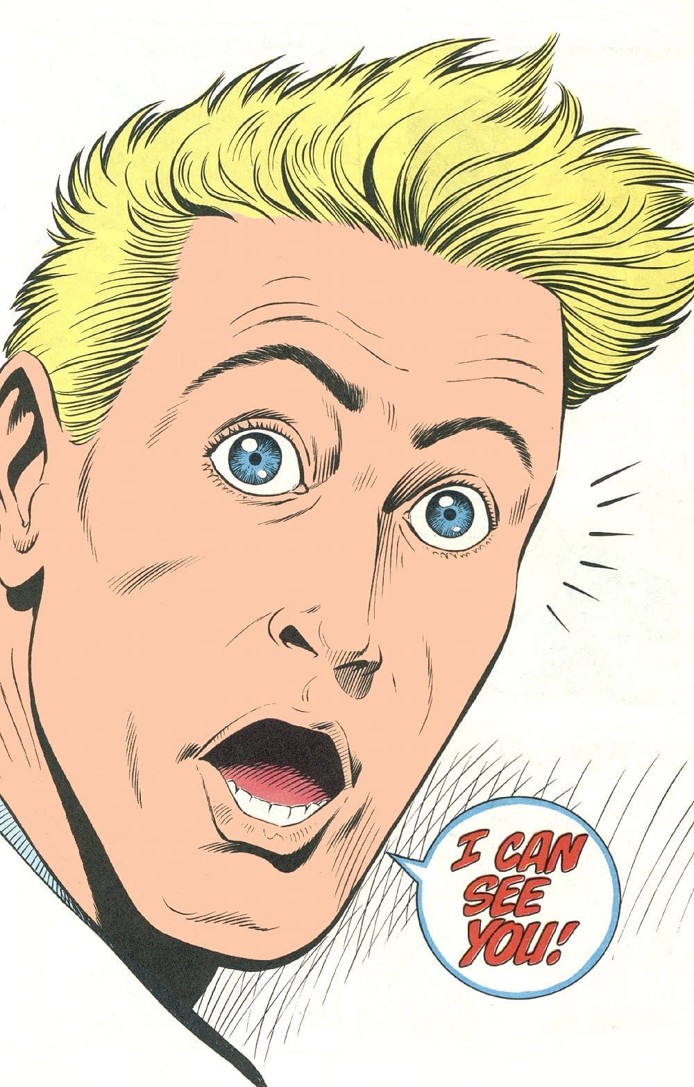 And, as Bleeding Cool gave you the nod in certain spoilers a little while ago, this is a reprise/homage/swipe from Animal Man #19 from 1989 by Grant Morrison and Chas Truog. In which Buddy Baker, Animal Man, under the influence of peyote, sees the comic book's reader, breaking the fourth wall and falling out of reality.