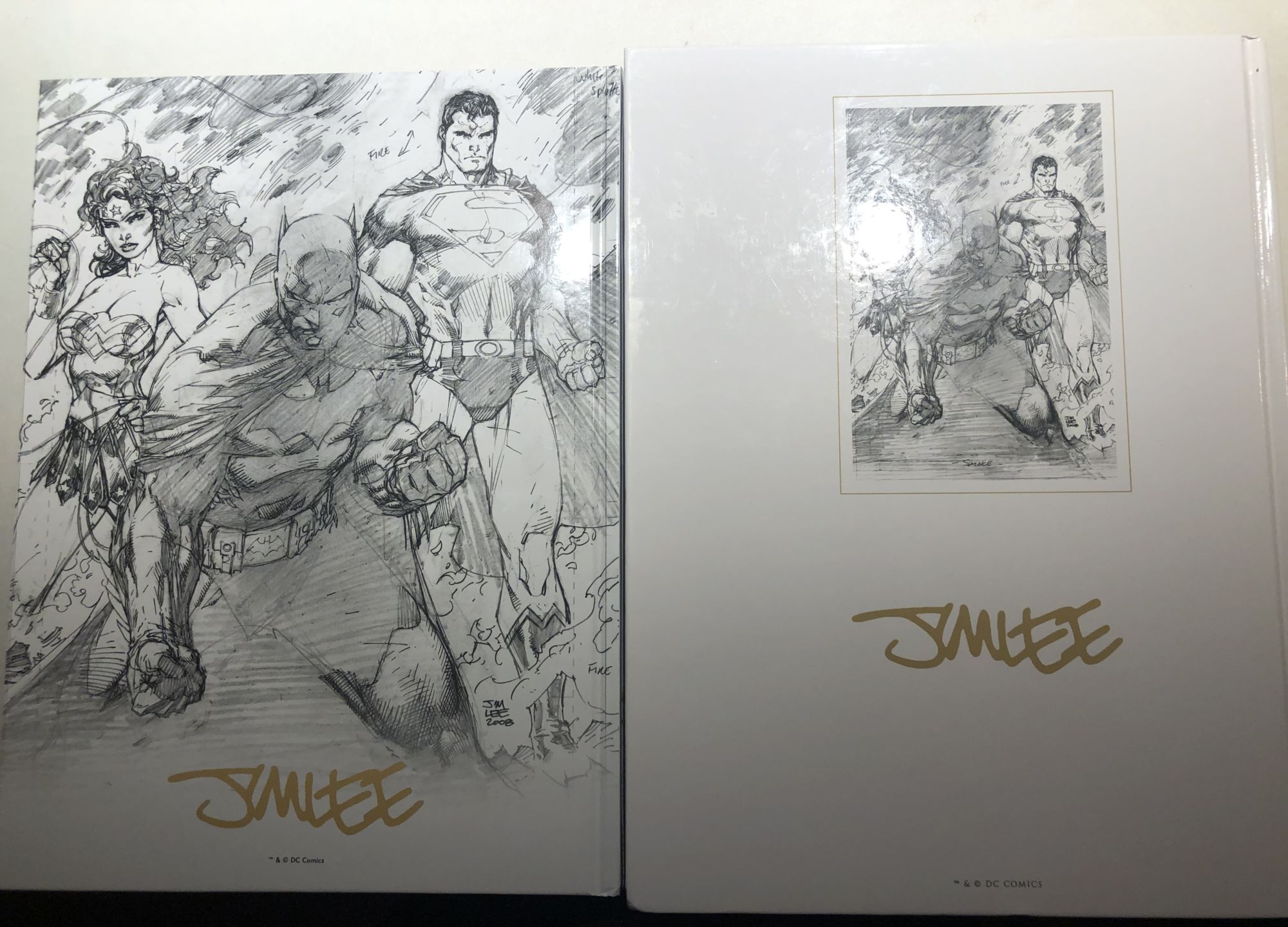 Without the dust jackets, it is obvious the two books are the same book, though the DC Comics: The Art of Jim Lee Volume 1 is noticeably smaller in size and is printed on thinner paper stock.