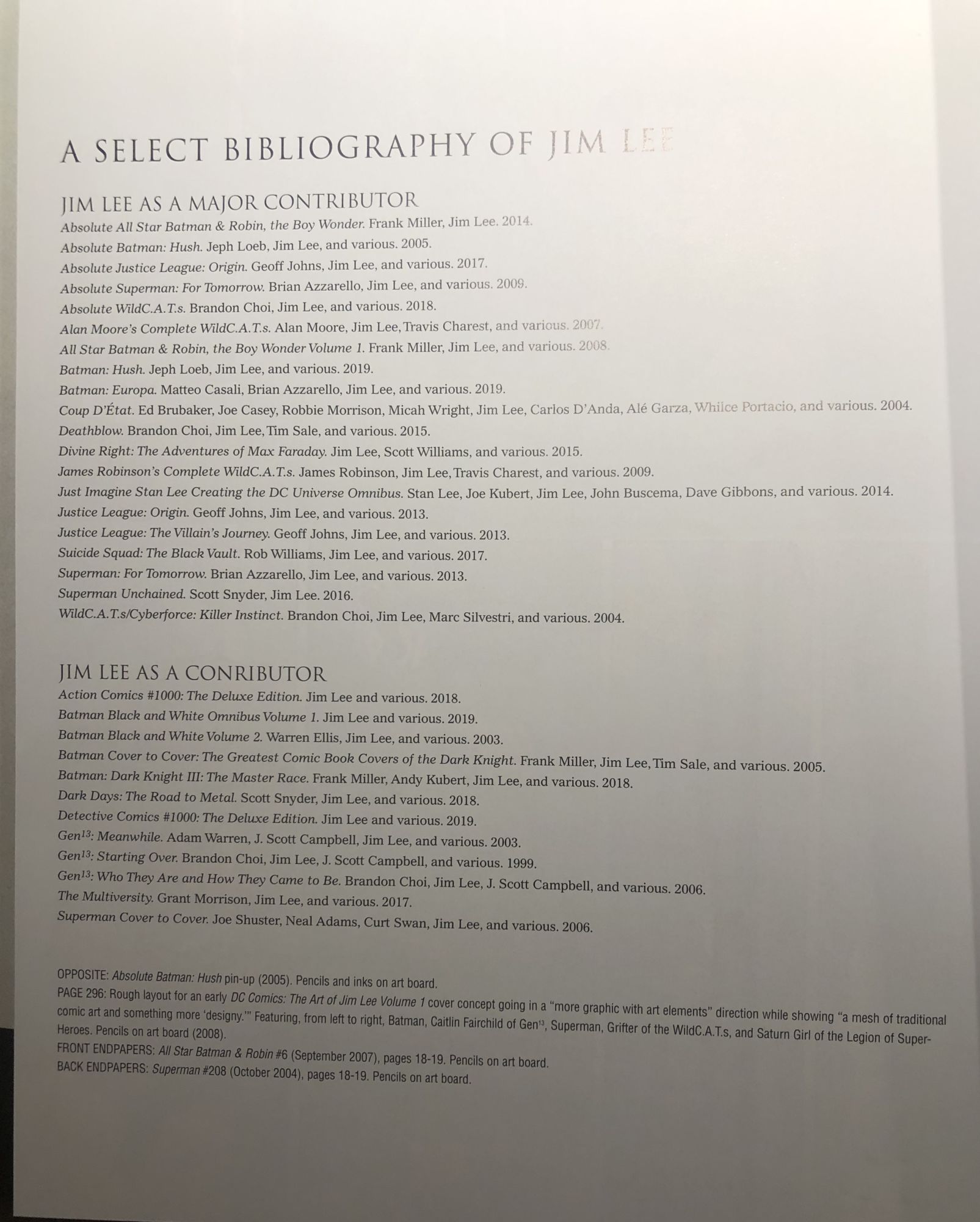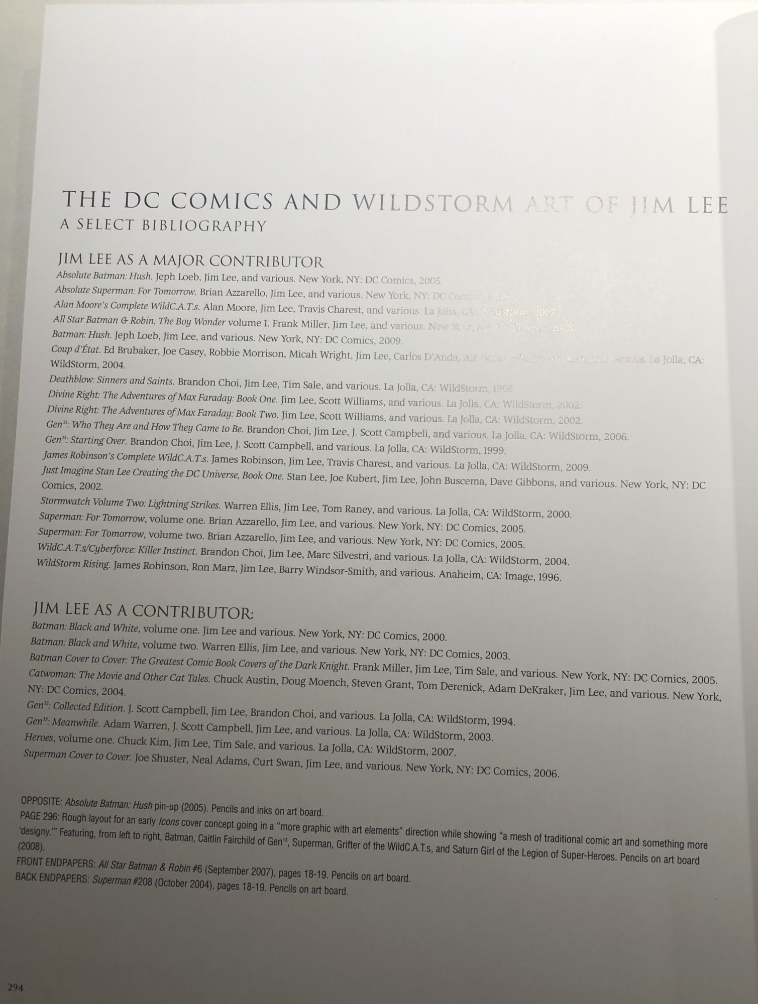- Bibliography from Icons: The DC Comics & Wildstorm Art of Jim Lee.