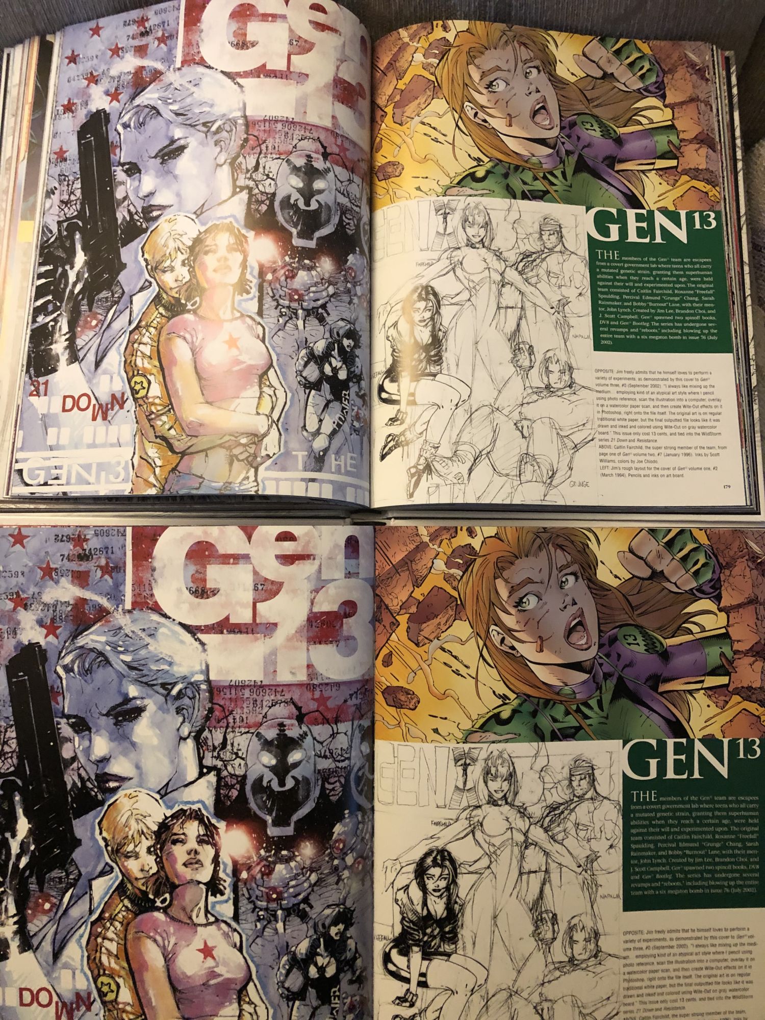 - Pages 178 and 179 from DC Comics The Art of Jim Lee Volume 1 on top, and Icons: The DC & Wildstorm Art of Jim Lee.