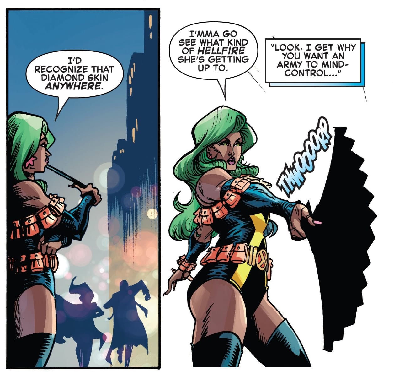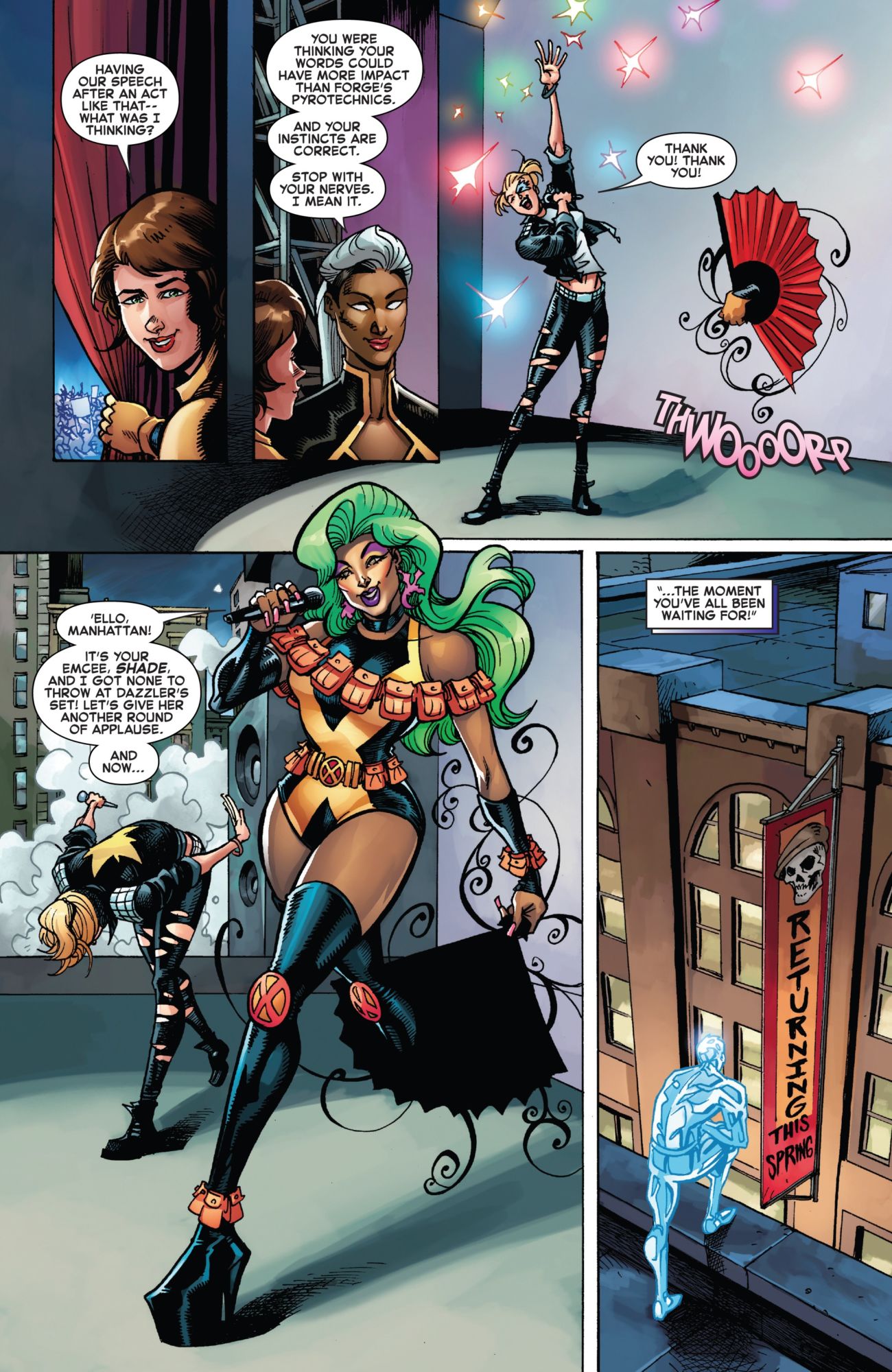 He also talked about his initial plans for her, 'I landed on the story of a hero who is learning how to be a true ally, and how the most privileged often have the system's most marginalized to thank for their safety' and that 'Shade helps Bishop, Emma Frost, Christian Frost, and the Morlocks stave off a group of murderous henchmen from attacking Mutant Pride. It's very intentional who I placed on the front lines, thanklessly protecting a bunch of oblivious partygoers in the city where the Stonewall riots took place.'