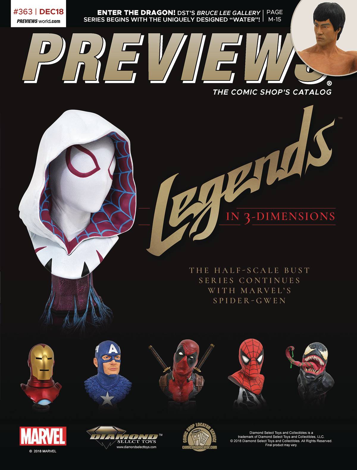 Diamond Previews is out a week today, listing all the comics, toys and the like Diamond are distributing through the direct market in February 2019. This time they have promoted the toy section to the front cover it seems, with Diamond's Legends series of Marvel half-scale busts.