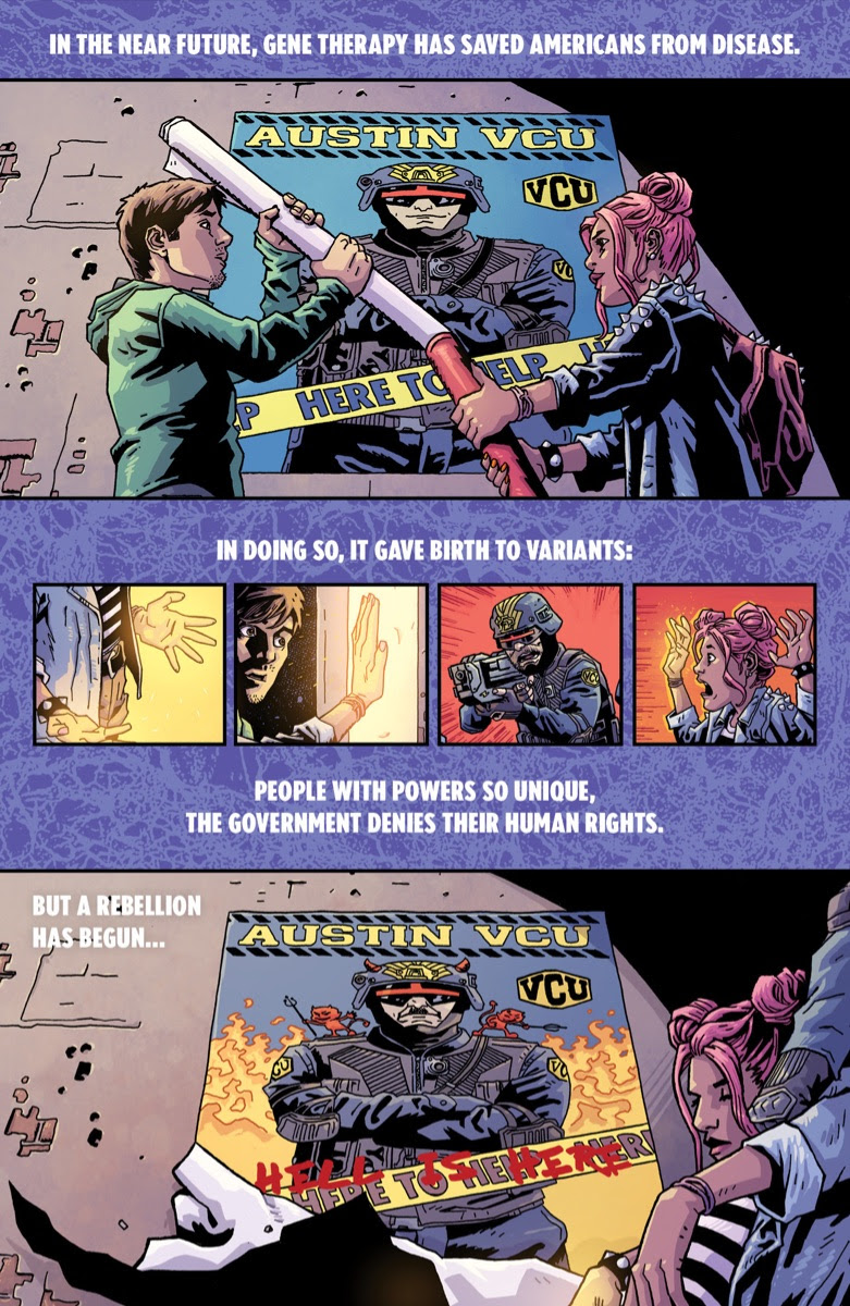 "Way back in 2014, I had an idea for this series that was all about the future—a nightmare that America could become, if we weren't careful. But in 2019, many of us are living that nightmare daily, in one headline after another—hatred, violence, injustice, disparity, disenfranchisement and more. So while this book is set in the future, it's really about our world today. It's about how people find love in hopeless times, and how our personal bonds inspire the courage to rise against forces bigger than ourselves," said Kittelsen. "I'm super grateful to everyone at Skybound for the time and effort they've put into this series, and for giving me a platform to tell an unconventional sci-fi love story that's more concerned with emotional arcs than action scenes. The best thing about working on this series has been collaborating with Eric. Whatever's in my mind's eye when I'm writing scripts, Eric finds a way to make it more impactful, dramatic, and beautiful. His character performances are award-worthy. It's impossible for me to imagine this book drawn by anyone else. Add Michael's colors to that, and this book is a visual stunner. I can't wait for you all to see what we have in store!"