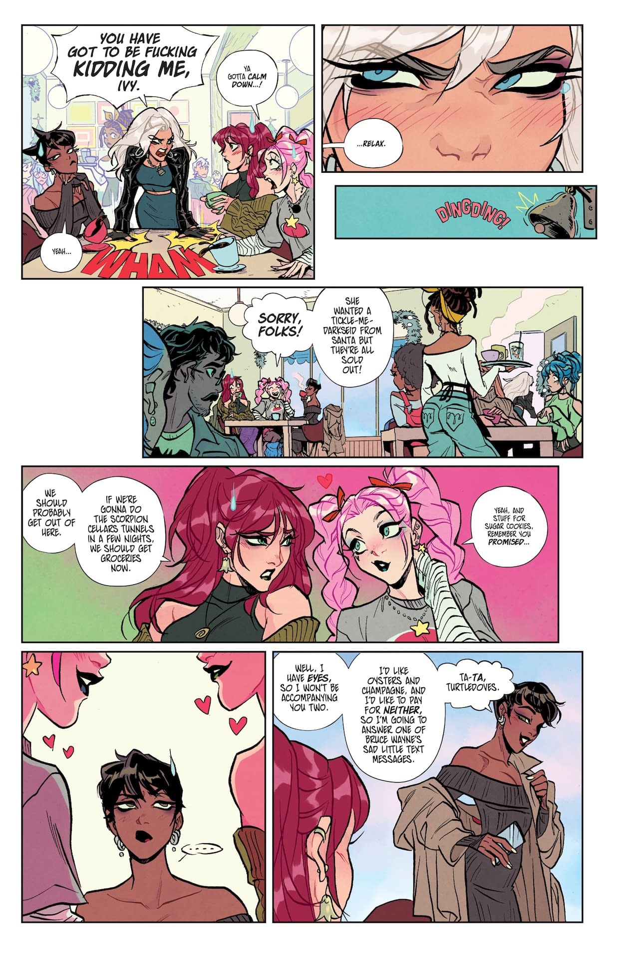 - Harley and Ivy's friendship evolves into romance while Catwoman and Bruce Wayne's relationship hits a cold snap when he tries to define things