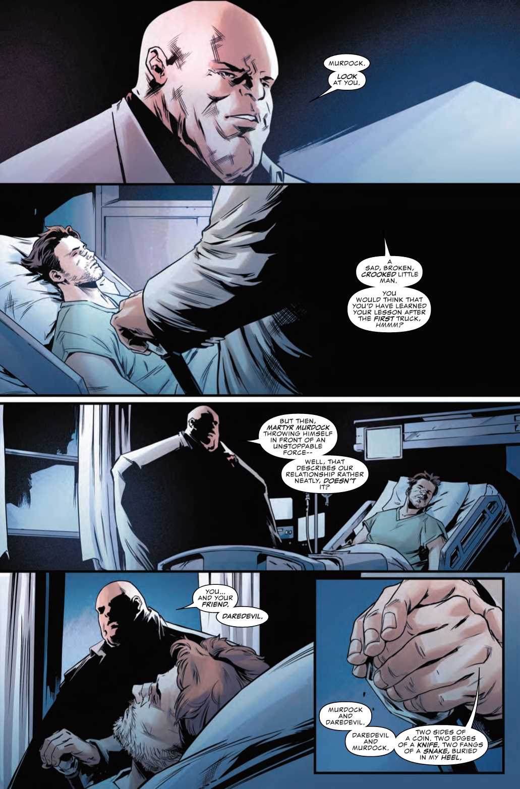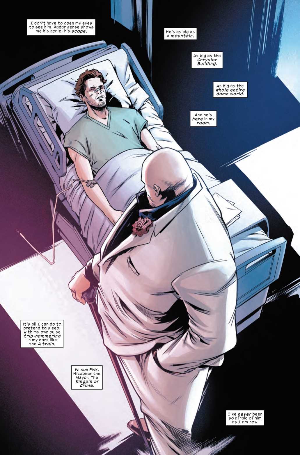 He's a wildly successful businessman turned Mayor of New York City, the envy of millions, and quite handsome to boot! Who wouldn't want to emulate Wilson Fisk, the Kingpin? Now, you can, as next week's issue of Man Without Fear reveals the secret to smelling just like The Kingpin. Matt Murdock is laid out in a hospital bed, passing the time until his upcoming relaunch, when the Kingpin, ever a caring soul, decides to pay his old friend a visit and comfort him in his time of need. Murdock, imbued with heightened senses, reveals exactly what goes into the Kingpins masculine scent…