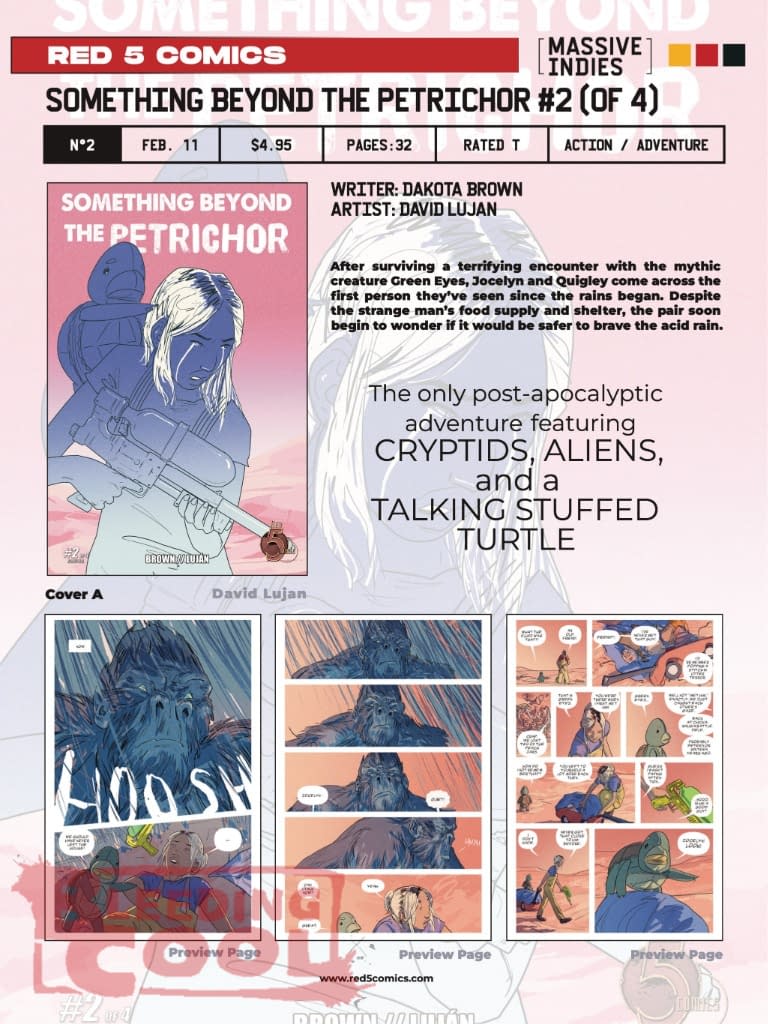 Snow Monkey #1 by Jason Shaw and Heubert Khan Michael launches in Red 5 Comics' February 2026 solicits and solicitations, pitched as Cobra Kai meets Shang-Chi but, you know, with a monkey. Or at least someone who looks a bit like one… As welll as more from Afterburn and Something Beyond The Petrichor…