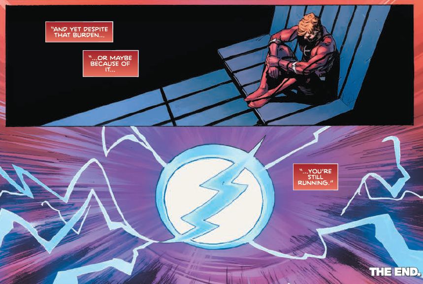 And certainly you can see how today's Heroes In Crisis #9 might lead into that. Indeed, it set it all up. Wally West, The Flash, in prison for the manslaughter of his fellow patients of Sanctuary. The Fastest Man Alive, saved by his friends, but placed in solitary confinement. In one place. Where he cannot move.