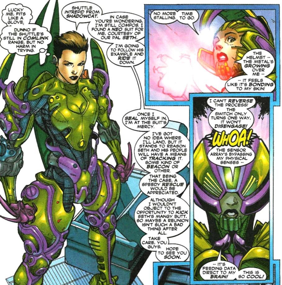 She was also able to wear a space suit specifically designed by the Neo, for the Neo.