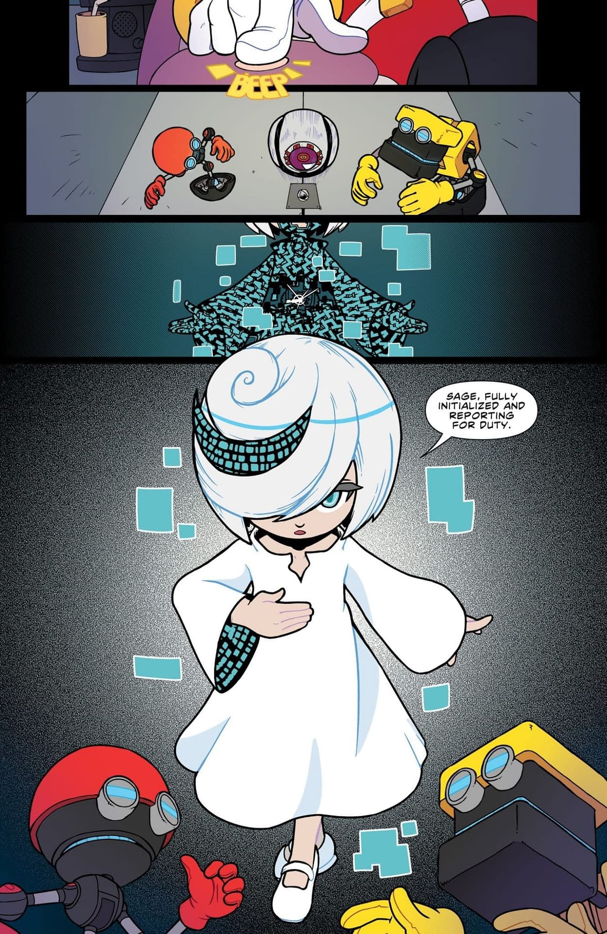 Metal Sonic has gone missing! In his desperation, Dr. Eggman promises Belle the Tinkerer that he'll remove her connection to the ruthless robot if she uses it one last time to find him. Not trusting the mad scientist, Belle agrees only as long as Sonic comes as protection.Backed into a corner, Dr. Eggman concedes with a condition of his own. As Belle and Sonic set out on their quest, they must be accompanied by one of his greatest creations—the artificial intelligence Sage! How will the robotic "family" react to this unexpected reunion?Don't miss Sage's official IDW debut as the next arc on the road to #100 starts here!