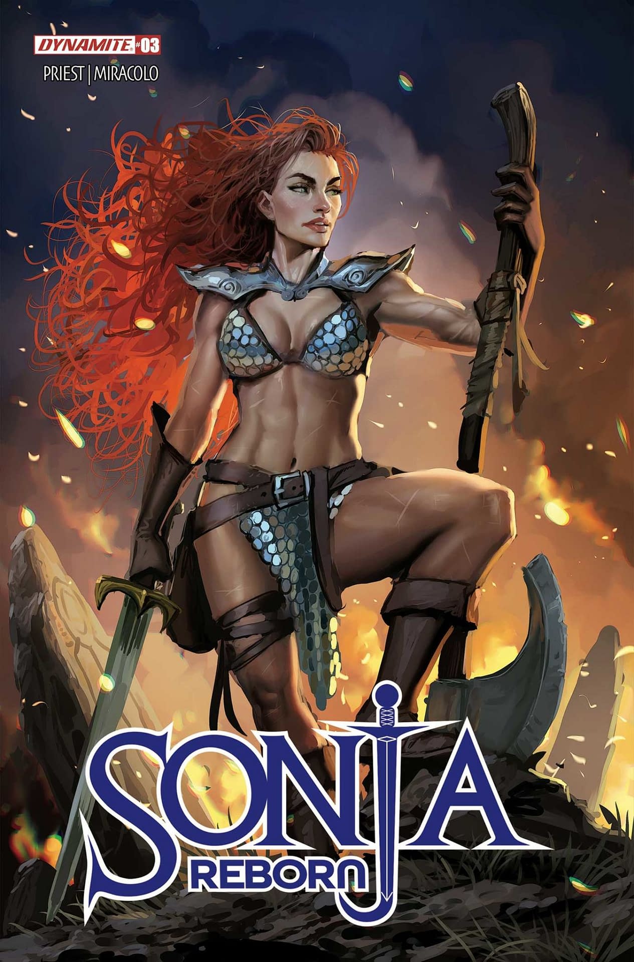 - Cover image for 0825DE0679 Sonja Reborn #3 Stuart Sayger Cover, by (W) Christopher Priest (A) Alessandro Miracolo (CA) Stuart Sayger, in stores Wednesday, October 29, 2025 from Dynamite Entertainment