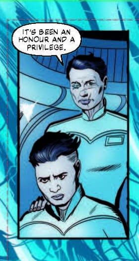 Sophie Aldred as a Clone Army in Salvation’s Child graphic novel by Mike Collins and Adrian Tchaikovsky from Paul Cornell's Cosmic Lighthouse