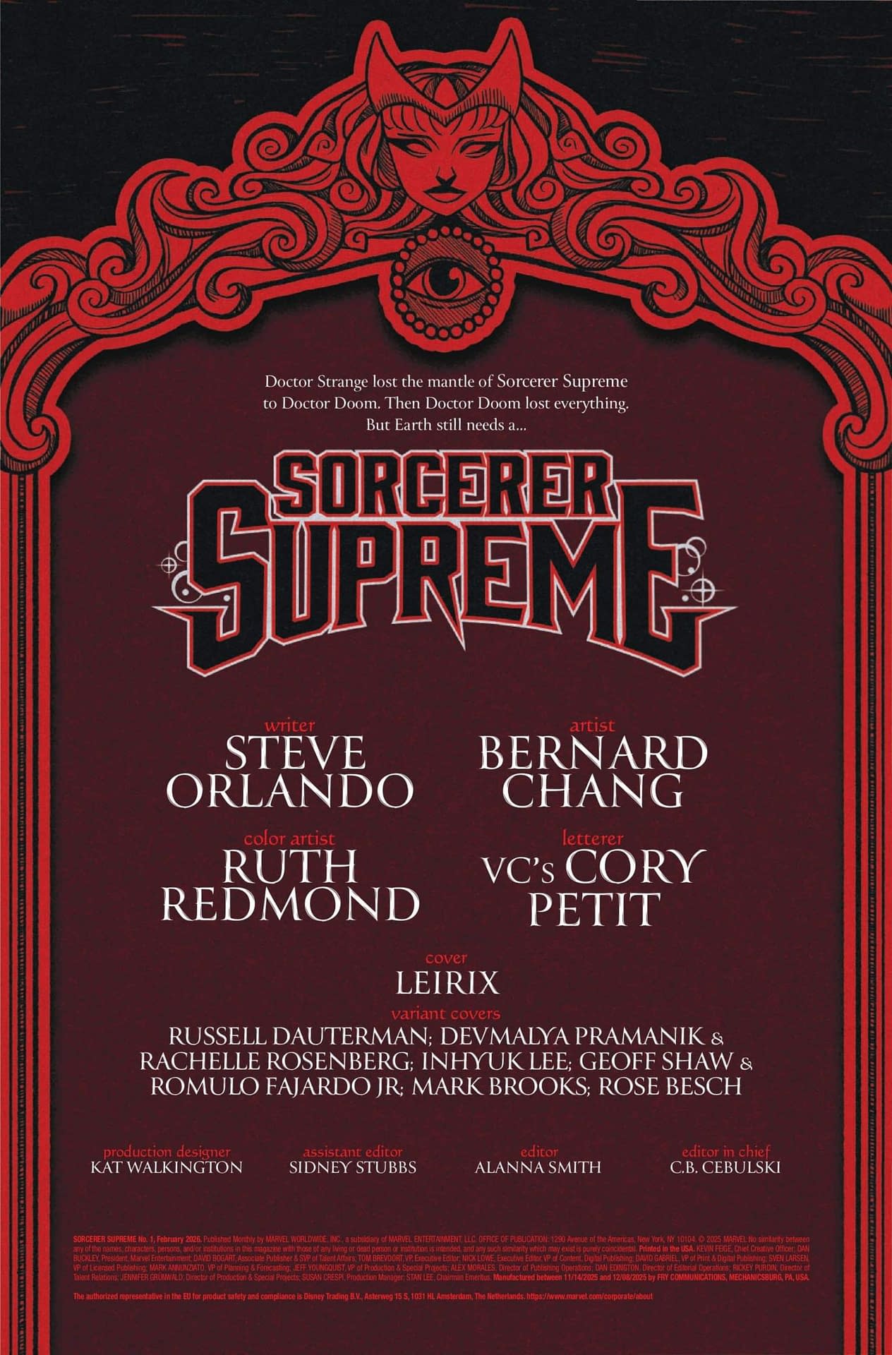 - Cover image for 75960621179100111 SORCERER SUPREME #1 LESLEY "LEIRIX" LI COVER, by Steve Orlando & Bernard Chang & Lesley "Leirix" Li, in stores Wednesday, December 31, 2025 from Marvel
