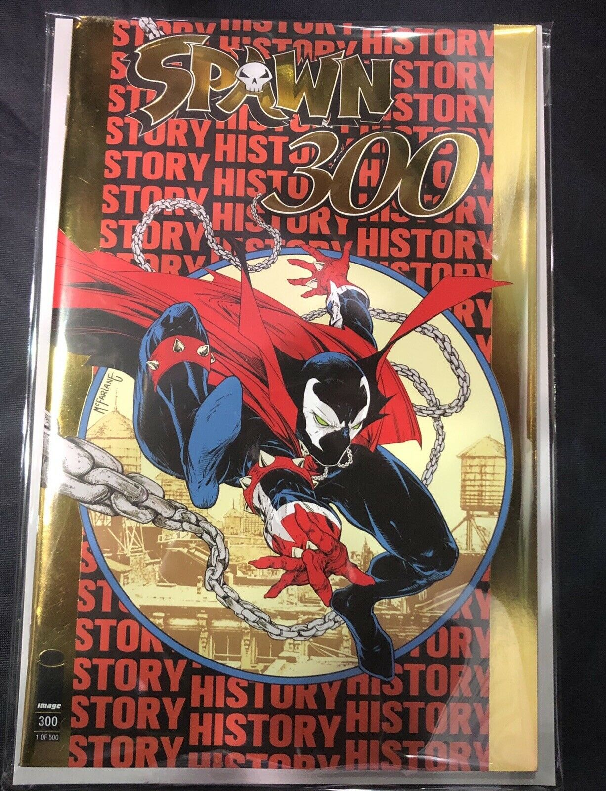 Todd McFarlane issued a 500-limited gold foil edition of Spawn #300 for New York Comic Con, selling for $50 at the Image Comics booth, with a 1500-limited silver foil edition for $35.
