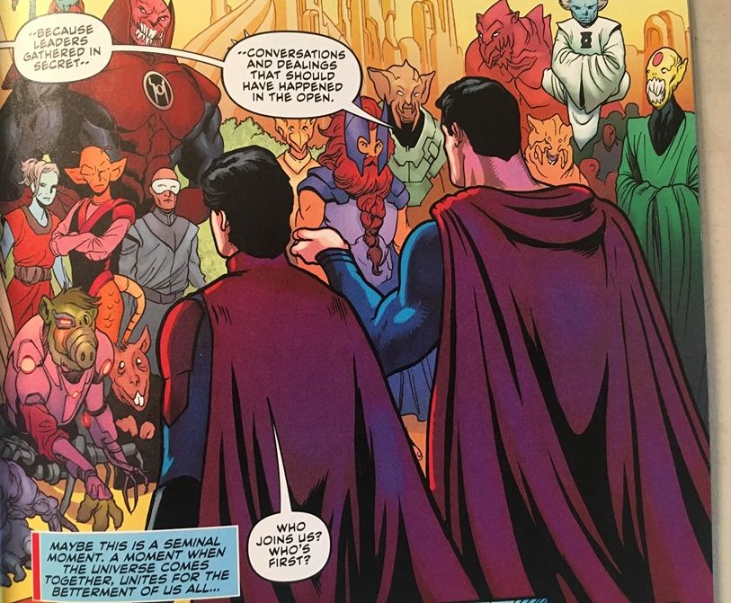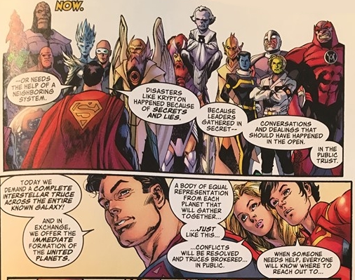 Bleeding Cool has been able to get photos from the comics in question. Major spoilerage of course. Well, both Superman and Supergirl tie into each other, as Superman and Superboy are setting up the United Planets. With the same scenario playing out in both comic books.