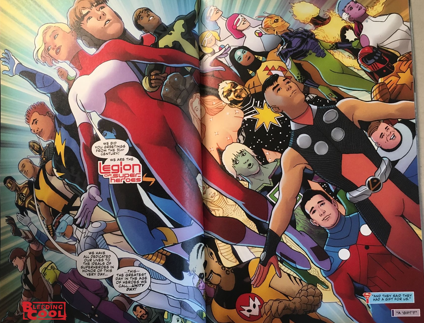 And as a result, triggering the arrival of the Legion Of The Super-Heroes from a thousand years hence to witness the moment that would one day lead to their formation. And this may be the problem. We've seen a previous version of this moment in promotional material.