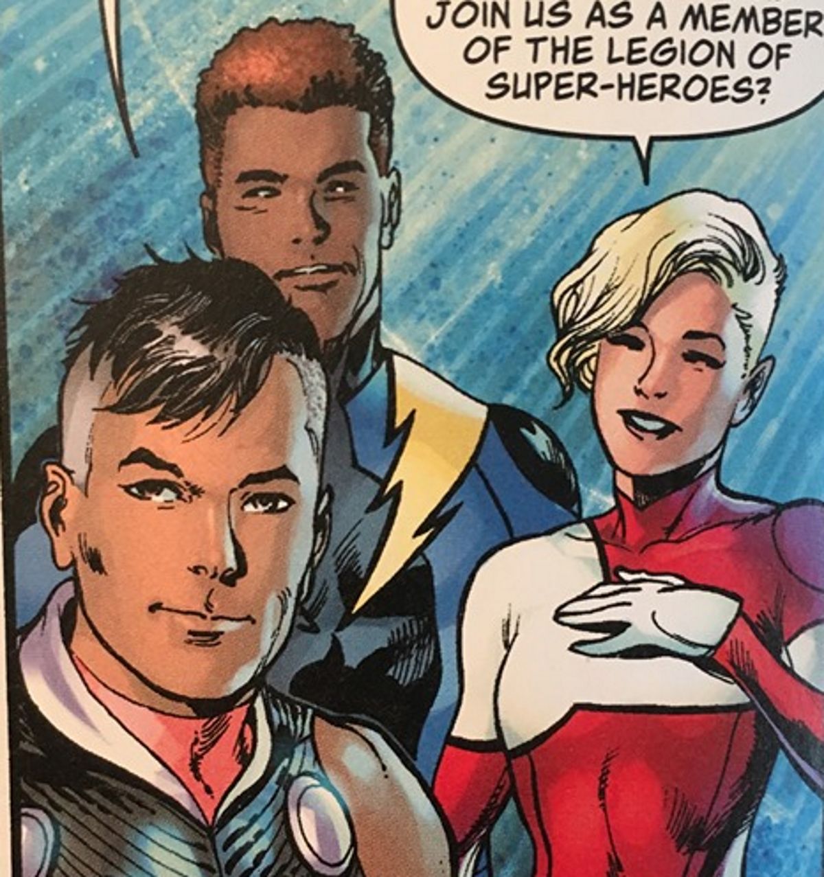 With the new Lightning Lad up front. Here's the design of the character from Ryan Sook.