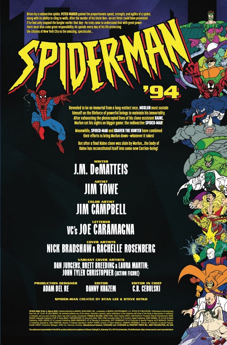 - Cover image for 75960621051000541 SPIDER-MAN '94 #5 MARVEL ANIMATION VARIANT, by J.M. DeMatteis & Jim Towe, in stores Wednesday, January 21, 2026 from Marvel