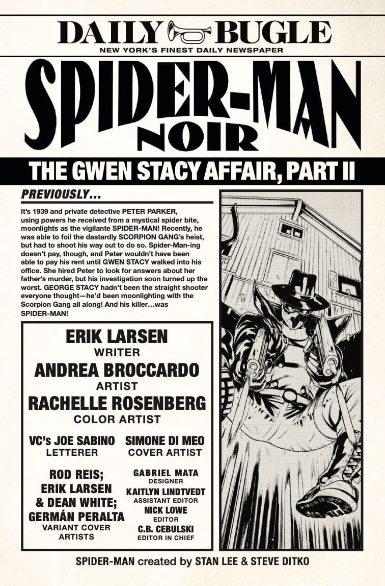 - Interior preview page from 75960621322100211 SPIDER-MAN NOIR #2 SIMONE DI MEO COVER, by Erik Larsen & Andrea Broccardo & Simone Di Meo, in stores Wednesday, November 12, 2025 from Marvel